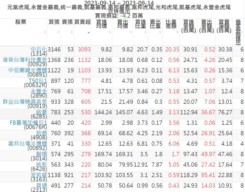 2023-0914主力買賣超個股 2023-09-14 股狗網小編 籌碼面每日資訊 發表留言 投資達人APP上線囉!!!『安裝APP』: 可參考下文 『如何查詢當沖、隔日沖分公司券商買賣』 主力當沖券商: 『元富虎尾』,『永豐金嘉義』,『統一嘉義』,『凱基嘉義』,『富邦嘉義』,『富邦虎尾』,『光和虎尾』,『凱基虎尾』,『永豐金虎尾』。 『當沖標的』 『買超股票』 『賣超股票』 免責宣言 本網站文章所提供資訊僅供參考,並無任何推介買賣之意,投資人應自行承擔交易風險。 分享此文: 按一下即可分享至 X(在新視窗中開啟) X 按一下以分享至 Facebook(在新視窗中開啟) Facebook 喜歡 正在載入...