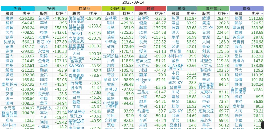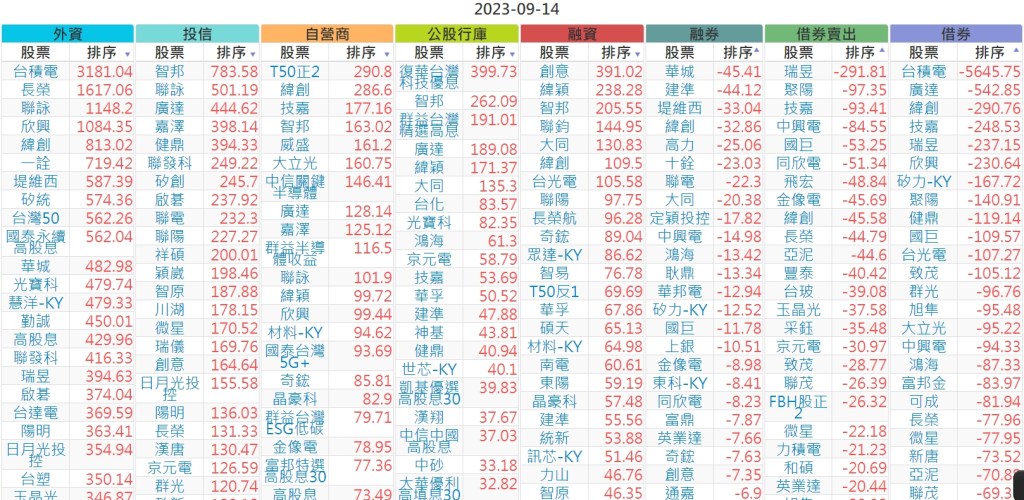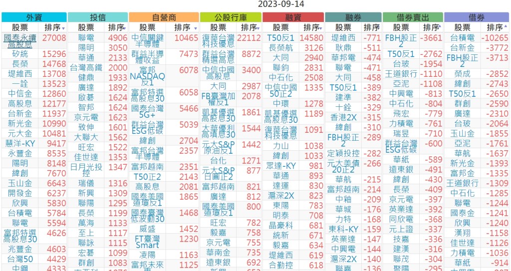 2023-0914上市【外資、投信】買賣超個股 2023-09-15 aindex168 投資誌-大盤 發表留言 投資達人APP上線囉!!!『安裝APP』 上市:【外資、投信】買超(依金額) (單位:百萬) 上市:【外資、投信】賣超(依金額) (單位:百萬) 上市:【外資、投信】買超(依張數) (單位:張數) 上市:【外資、投信】賣超(依張數) (單位:張數) 免責宣言 本網站文章所提供資訊僅供參考,並無任何推介買賣之意,投資人應自行承擔交易風險。 分享此文: 按一下即可分享至 X(在新視窗中開啟) X 按一下以分享至 Facebook(在新視窗中開啟) Facebook 喜歡 正在載入...