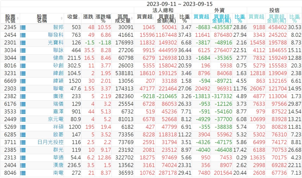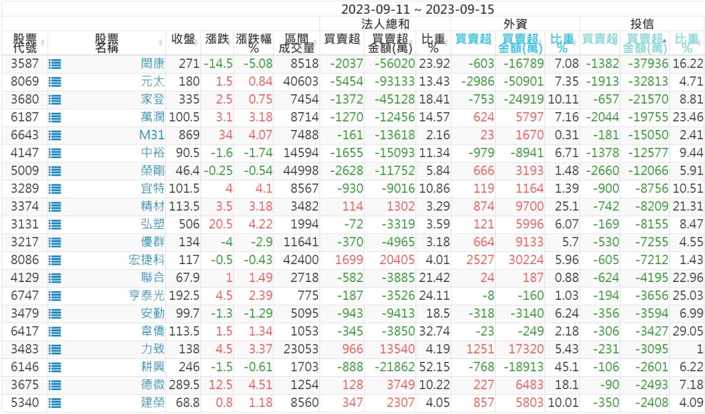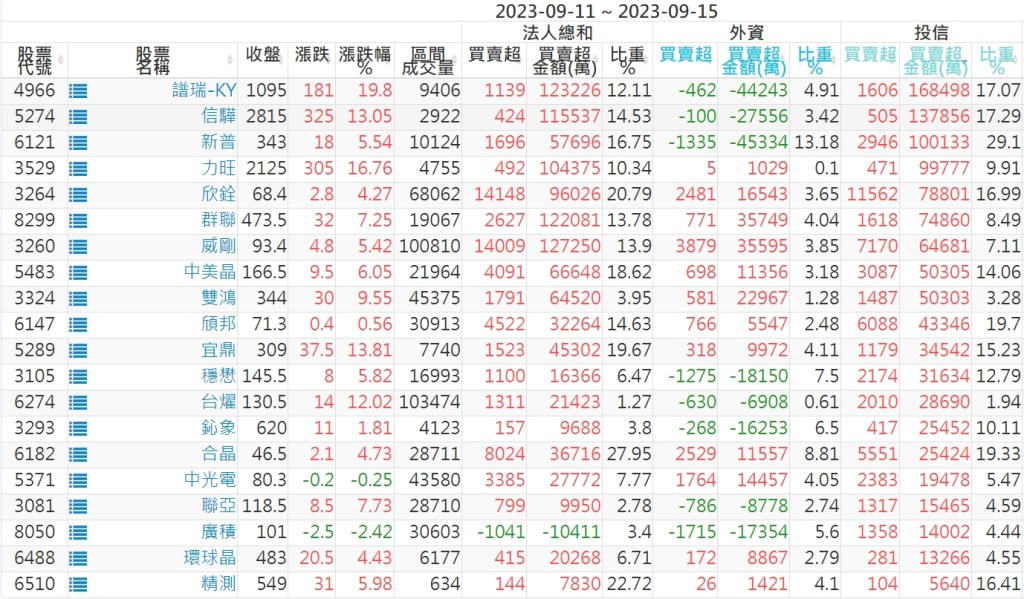 2023/09/11~2023/09/15近5日【投信】買賣超個股 2023-09-17 股狗網小編 投資誌-大盤 發表留言 投資達人APP上線囉!!!『安裝APP』: 【上市投信買超個股】(以金額排行,單位:萬) 【上市投信賣超個股】(以金額排行,單位:萬) 【上櫃投信買超個股】(以金額排行,單位:萬) 【上櫃投信賣超個股】(以金額排行,單位:萬) 免責宣言 本網站文章所提供資訊僅供參考,並無任何推介買賣之意,投資人應自行承擔交易風險。 分享此文: 按一下即可分享至 X(在新視窗中開啟) X 按一下以分享至 Facebook(在新視窗中開啟) Facebook 喜歡 正在載入...