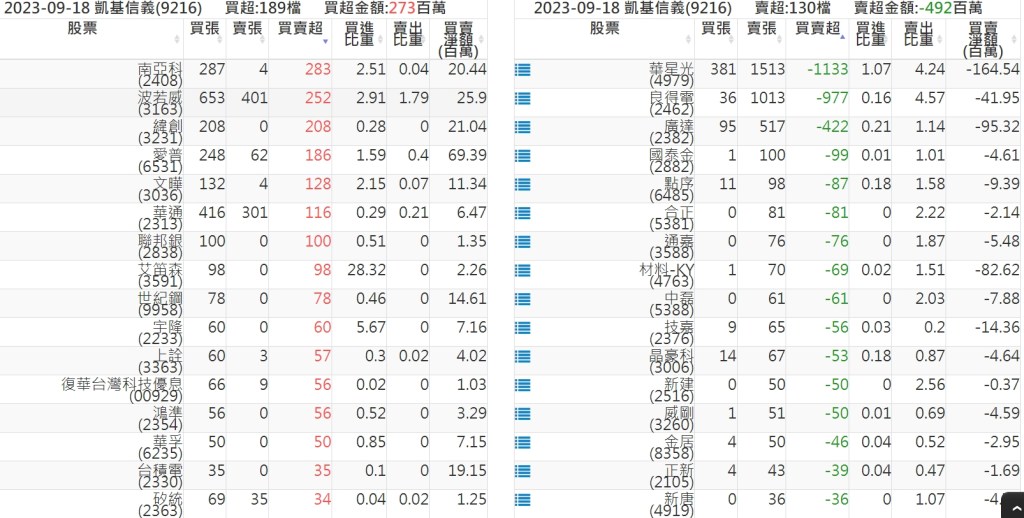 2023-0918關鍵券商買賣超 2023-09-18 股狗網小編 籌碼面每日資訊 發表留言 投資達人APP上線囉!!!『安裝APP』: 關鍵券商買賣超: 臺銀證券(1040): 台灣摩根士丹利(1470): 凱基台北(9268): 凱基信義(9216): 元大土城永寧(9875): 康和永和(845B) : 富邦建國(9658): 免責宣言 本網站文章所提供資訊僅供參考,並無任何推介買賣之意,投資人應自行承擔交易風險。 分享此文: 按一下即可分享至 X(在新視窗中開啟) X 按一下以分享至 Facebook(在新視窗中開啟) Facebook 喜歡 正在載入...