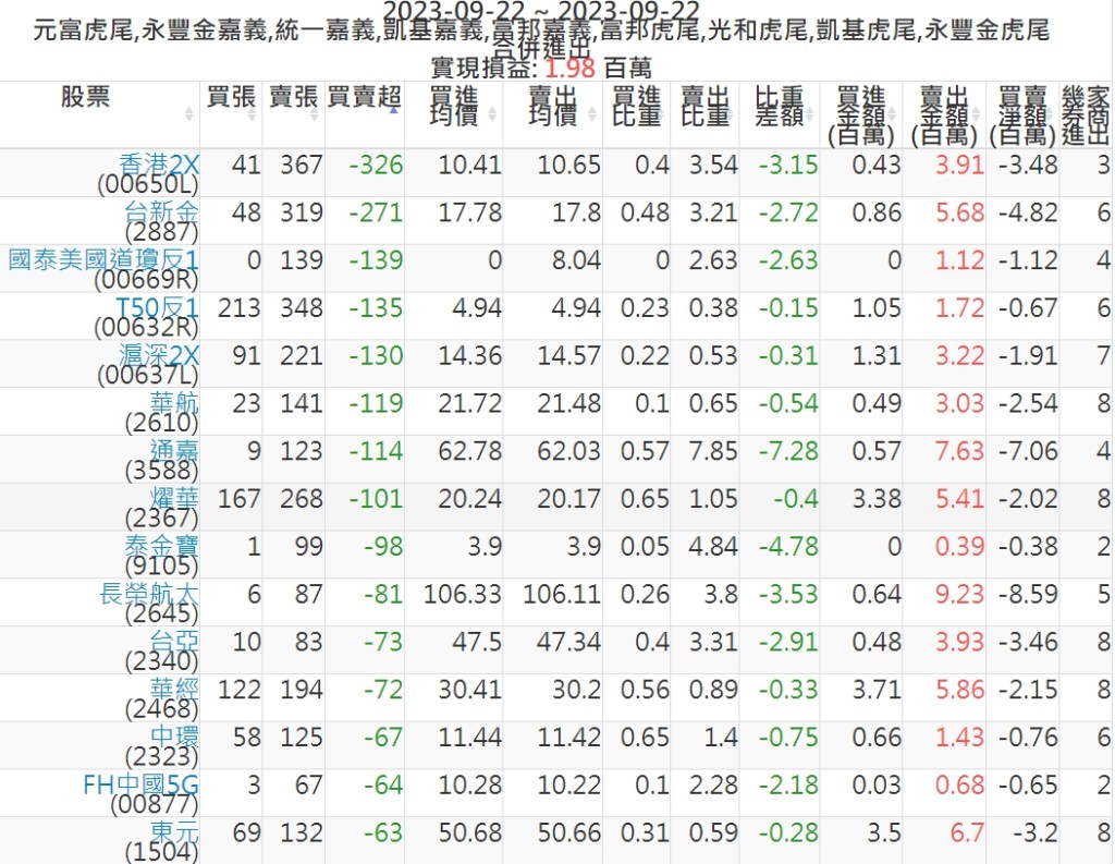 2023-0922主力買賣超個股 2023-09-22 股狗網小編 籌碼面每日資訊 發表留言 投資達人APP上線囉!!!『安裝APP』: 可參考下文 『如何查詢當沖、隔日沖分公司券商買賣』 主力當沖券商: 『元富虎尾』,『永豐金嘉義』,『統一嘉義』,『凱基嘉義』,『富邦嘉義』,『富邦虎尾』,『光和虎尾』,『凱基虎尾』,『永豐金虎尾』。 『當沖標的』 『買超股票』 『賣超股票』 免責宣言 本網站文章所提供資訊僅供參考,並無任何推介買賣之意,投資人應自行承擔交易風險。 分享此文: 分享到 X(在新視窗中開啟) X 分享到 Facebook(在新視窗中開啟) Facebook 喜歡 正在載入...