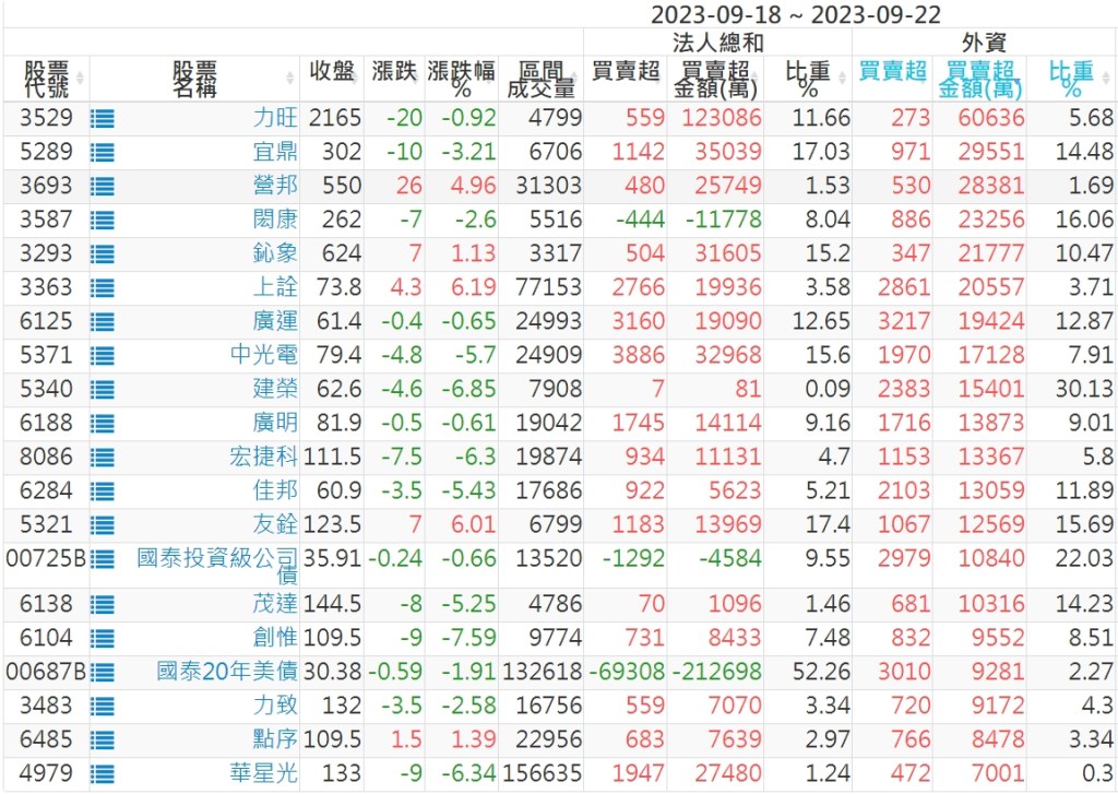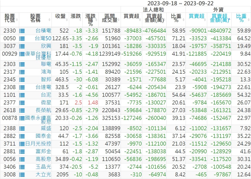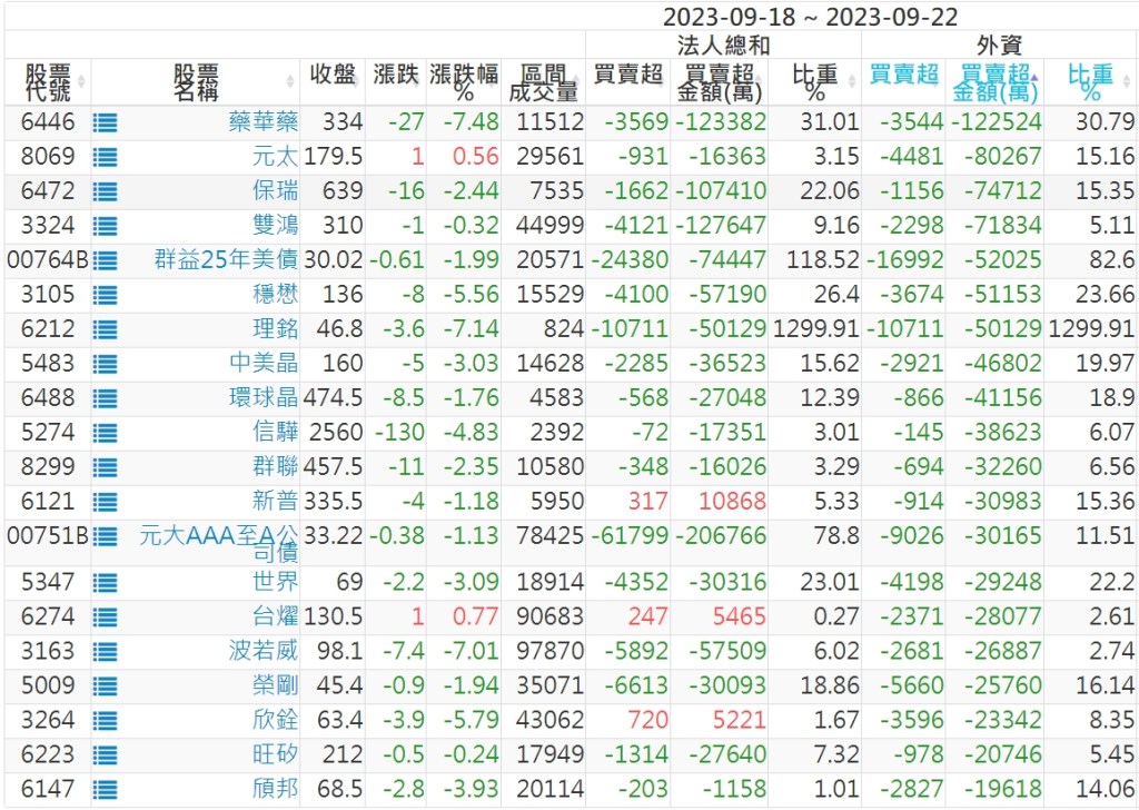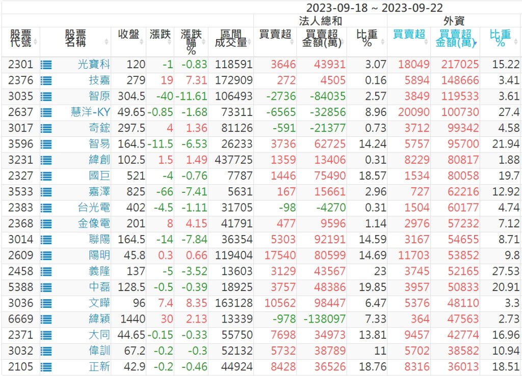 2023/09/18~2023/09/22近5日【外資】買賣超個股 2023-09-24 股狗網小編 投資誌-大盤 發表留言 投資達人APP上線囉!!!『安裝APP』: 外資本周累積【賣超】約1058億元。 【上市外資買超個股】(以金額排行,單位:萬) 【上市外資賣超個股】(以金額排行,單位:萬) 【上櫃外資買超個股】(以金額排行,單位:萬) 【上櫃外資賣超個股】(以金額排行,單位:萬) 免責宣言 本網站文章所提供資訊僅供參考,並無任何推介買賣之意,投資人應自行承擔交易風險。 分享此文: 分享到 X(在新視窗中開啟) X 分享到 Facebook(在新視窗中開啟) Facebook 喜歡 正在載入...