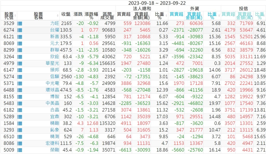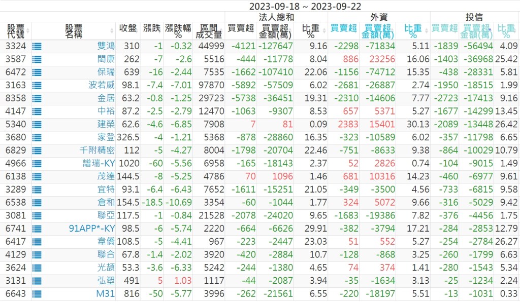 2023/09/18~2023/09/22近5日【投信】買賣超個股 2023-09-24 股狗網小編 投資誌-大盤 發表留言 投資達人APP上線囉!!!『安裝APP』: 【上市投信買超個股】(以金額排行,單位:萬) 【上市投信賣超個股】(以金額排行,單位:萬) 【上櫃投信買超個股】(以金額排行,單位:萬) 【上櫃投信賣超個股】(以金額排行,單位:萬) 免責宣言 本網站文章所提供資訊僅供參考,並無任何推介買賣之意,投資人應自行承擔交易風險。 分享此文: 分享到 X(在新視窗中開啟) X 分享到 Facebook(在新視窗中開啟) Facebook 喜歡 正在載入...