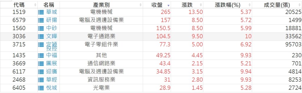 2023-0927股價創20日新高爆量上漲股 2023-09-27 股狗網小編 選股條件 發表留言 投資達人APP上線囉!!!『安裝APP』: 利用股狗選股的選股條件可以【挑選突破20日新高,爆量上漲起漲點股票】 1.股狗選股 https://www.stockdog.com.tw 2.選股條件: a.收盤價創20日新高 b.當日漲幅 > 2% C.成交量大於5日均量2倍 免責宣言 本網站文章所提供資訊僅供參考,並無任何推介買賣之意,投資人應自行承擔交易風險。 分享此文: 分享到 X(在新視窗中開啟) X 分享到 Facebook(在新視窗中開啟) Facebook 喜歡 正在載入...