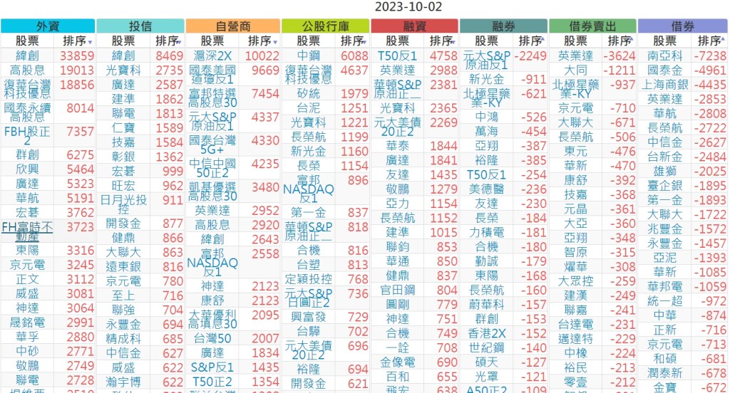 2023-1002上市【外資、投信】買賣超個股 2023-10-03 股狗網小編 投資誌-大盤 發表留言 投資達人APP上線囉!!!『安裝APP』 上市:【外資、投信】買超(依金額) (單位:百萬) 上市:【外資、投信】賣超(依金額) (單位:百萬) 上市:【外資、投信】買超(依張數) (單位:張數) 上市:【外資、投信】賣超(依張數) (單位:張數) 免責宣言 本網站文章所提供資訊僅供參考,並無任何推介買賣之意,投資人應自行承擔交易風險。 分享此文: 分享到 X(在新視窗中開啟) X 分享到 Facebook(在新視窗中開啟) Facebook 喜歡 正在載入...