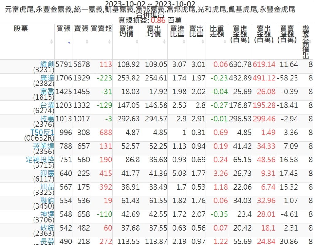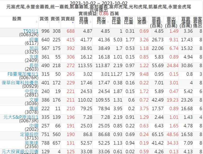 2023-1002主力買賣超個股 2023-10-03 股狗網小編 籌碼面每日資訊 發表留言 投資達人APP上線囉!!!『安裝APP』: 可參考下文 『如何查詢當沖、隔日沖分公司券商買賣』 主力當沖券商: 『元富虎尾』,『永豐金嘉義』,『統一嘉義』,『凱基嘉義』,『富邦嘉義』,『富邦虎尾』,『光和虎尾』,『凱基虎尾』,『永豐金虎尾』。 『當沖標的』 『買超股票』 『賣超股票』 免責宣言 本網站文章所提供資訊僅供參考,並無任何推介買賣之意,投資人應自行承擔交易風險。 分享此文: 分享到 X(在新視窗中開啟) X 分享到 Facebook(在新視窗中開啟) Facebook 喜歡 正在載入...