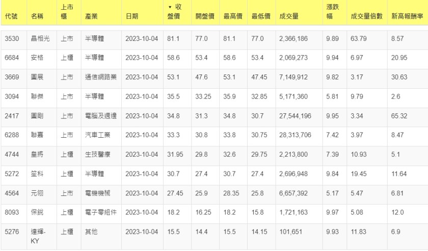 2023-1004股價創20日新高爆量上漲股 2023-10-04 股狗網小編 選股條件 發表留言 投資達人APP上線囉!!!『安裝APP』: 利用股狗選股的選股條件可以【挑選突破20日新高,爆量上漲起漲點股票】 1.股狗選股 https://www.stockdog.com.tw 2.選股條件: a.收盤價創20日新高 b.當日漲幅 > 2% C.成交量大於5日均量2倍 免責宣言 本網站文章所提供資訊僅供參考,並無任何推介買賣之意,投資人應自行承擔交易風險。 分享此文: 分享到 X(在新視窗中開啟) X 分享到 Facebook(在新視窗中開啟) Facebook 喜歡 正在載入...