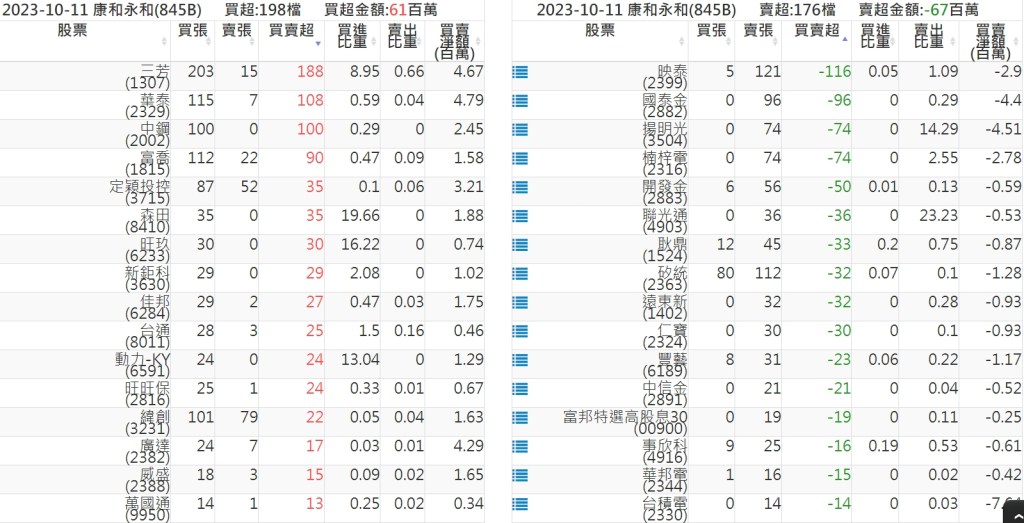 2023-1011關鍵券商買賣超 2023-10-11 股狗網小編 籌碼面每日資訊 發表留言 投資達人APP上線囉!!!『安裝APP』: 關鍵券商買賣超: 臺銀證券(1040): 台灣摩根士丹利(1470): 凱基台北(9268): 凱基信義(9216): 元大土城永寧(9875): 康和永和(845B) : 富邦建國(9658): 免責宣言 本網站文章所提供資訊僅供參考,並無任何推介買賣之意,投資人應自行承擔交易風險。 分享此文: 分享到 X(在新視窗中開啟) X 分享到 Facebook(在新視窗中開啟) Facebook 喜歡 正在載入...