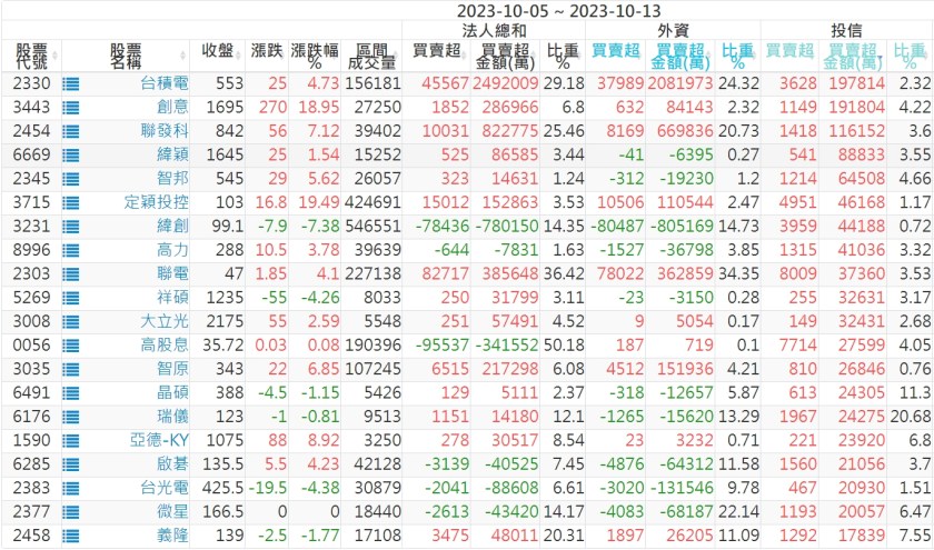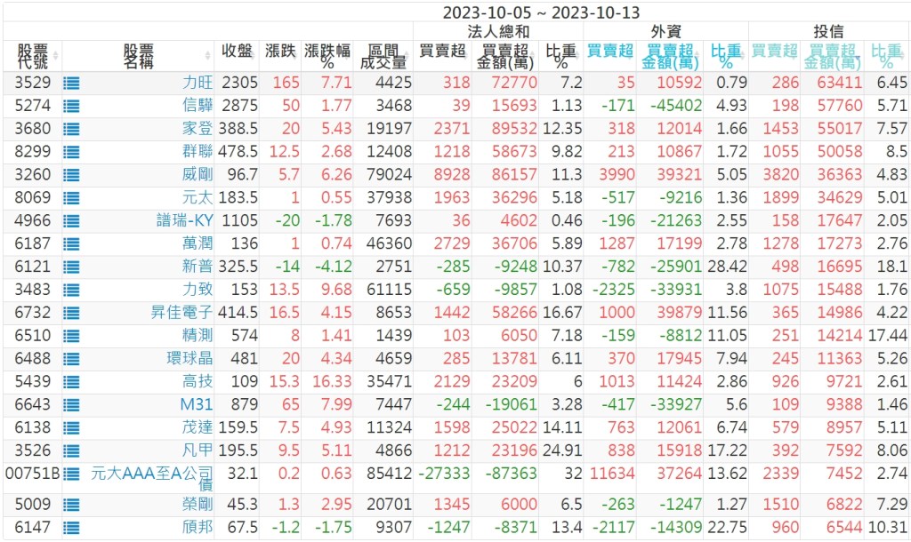 2023/10/05~2023/10/13近5日【投信】買賣超個股 2023-10-15 股狗網小編 投資誌-大盤 發表留言 投資達人APP上線囉!!!『安裝APP』: 【上市投信買超個股】(以金額排行,單位:萬) 【上市投信賣超個股】(以金額排行,單位:萬) 【上櫃投信買超個股】(以金額排行,單位:萬) 【上櫃投信賣超個股】(以金額排行,單位:萬) 免責宣言 本網站文章所提供資訊僅供參考,並無任何推介買賣之意,投資人應自行承擔交易風險。 分享此文: 分享到 X(在新視窗中開啟) X 分享到 Facebook(在新視窗中開啟) Facebook 喜歡 正在載入...