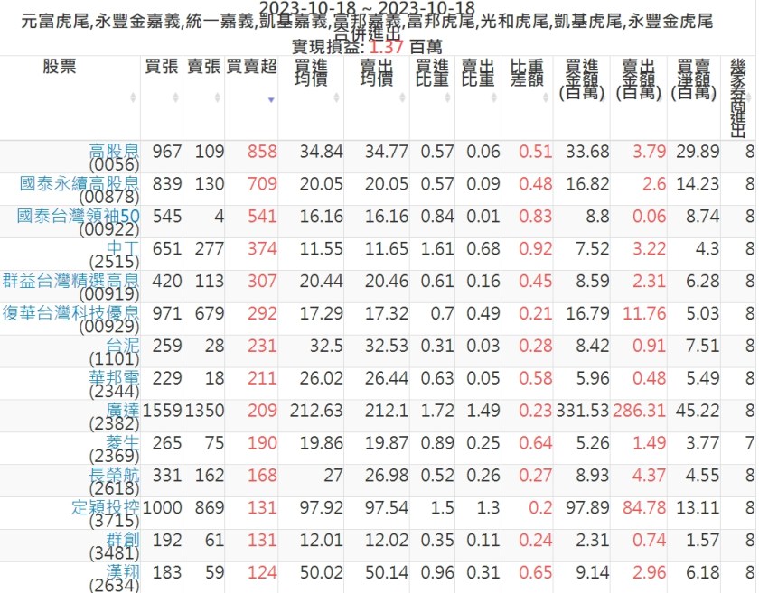 2023-1018主力買賣超個股 2023-10-18 股狗網小編 籌碼面每日資訊 發表留言 投資達人APP上線囉!!!『安裝APP』: 可參考下文 『如何查詢當沖、隔日沖分公司券商買賣』 主力當沖券商: 『元富虎尾』,『永豐金嘉義』,『統一嘉義』,『凱基嘉義』,『富邦嘉義』,『富邦虎尾』,『光和虎尾』,『凱基虎尾』,『永豐金虎尾』。 『當沖標的』 『買超股票』 『賣超股票』 免責宣言 本網站文章所提供資訊僅供參考,並無任何推介買賣之意,投資人應自行承擔交易風險。 分享此文: 分享到 X(在新視窗中開啟) X 分享到 Facebook(在新視窗中開啟) Facebook 喜歡 正在載入...