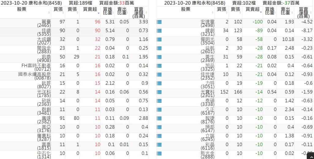 2023-1020關鍵券商買賣超 2023-10-20 股狗網小編 籌碼面每日資訊 發表留言 投資達人APP上線囉!!!『安裝APP』: 關鍵券商買賣超: 臺銀證券(1040): 台灣摩根士丹利(1470): 凱基台北(9268): 凱基信義(9216): 元大土城永寧(9875): 康和永和(845B) : 富邦建國(9658): 免責宣言 本網站文章所提供資訊僅供參考,並無任何推介買賣之意,投資人應自行承擔交易風險。 分享此文: 分享到 X(在新視窗中開啟) X 分享到 Facebook(在新視窗中開啟) Facebook 喜歡 正在載入...