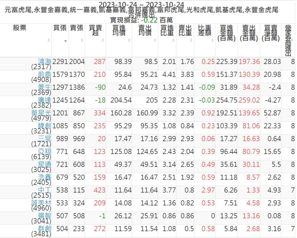 『元富虎尾』,『永豐金嘉義』,『統一嘉義』,『凱基嘉義』,『富邦嘉義』,『富邦虎尾』,『光和虎尾』,『凱基虎尾』,『永豐金虎尾』。