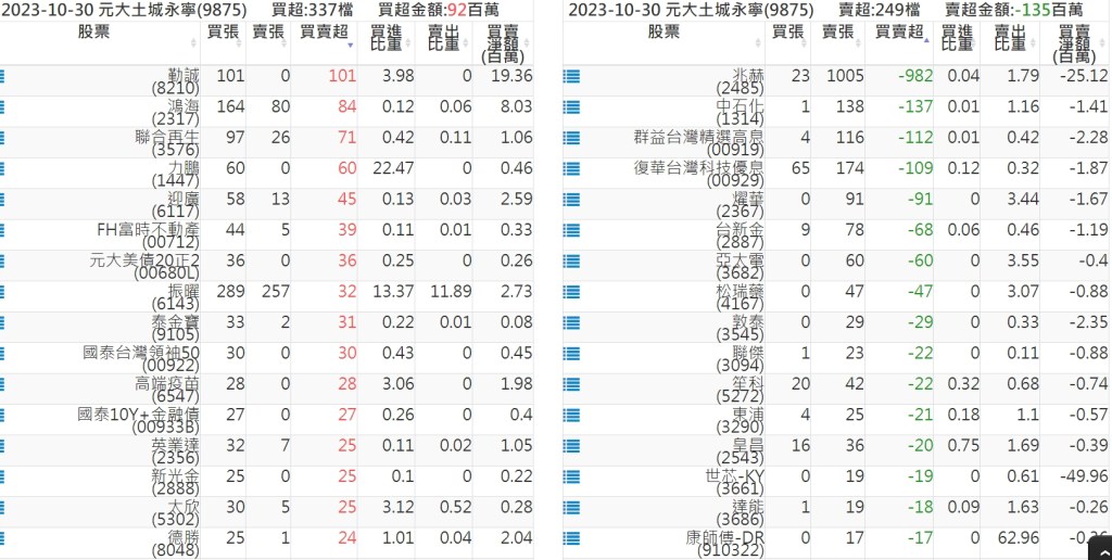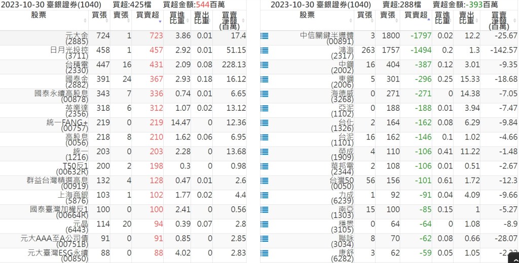 2023-1030關鍵券商買賣超