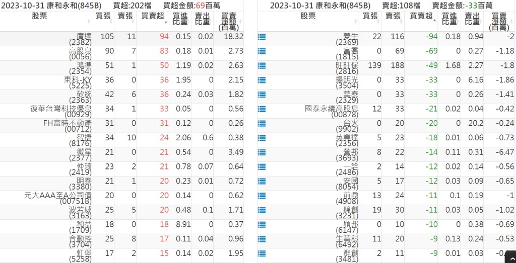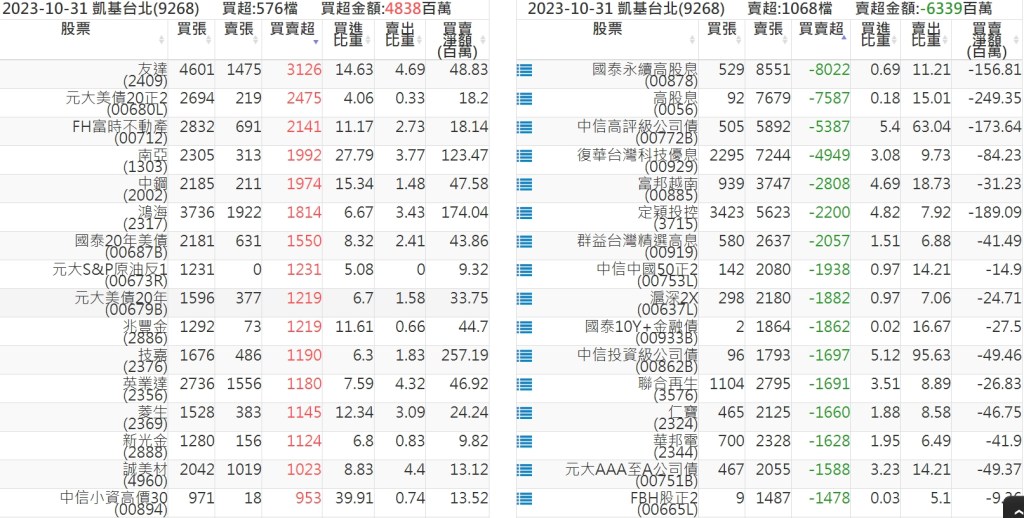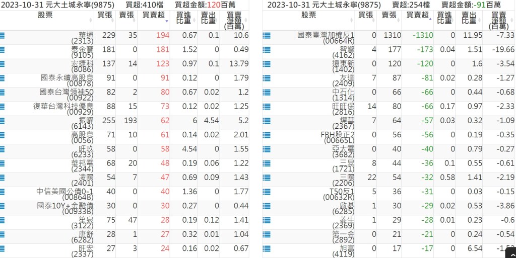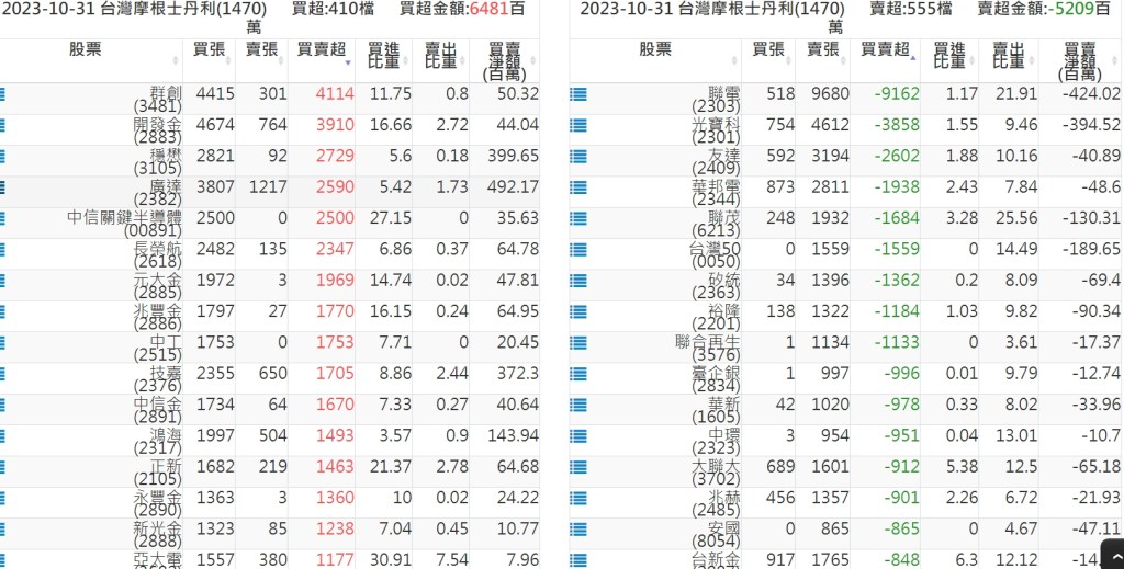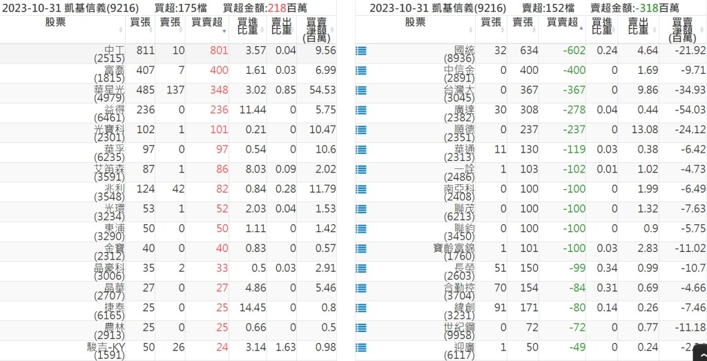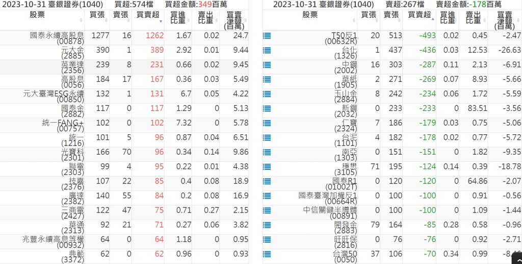 2023-1031關鍵券商買賣超