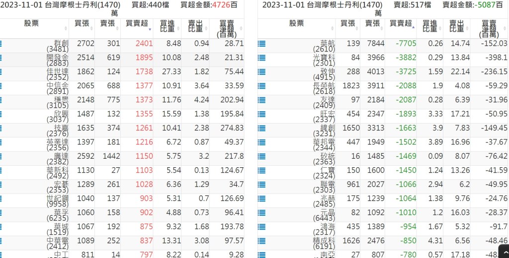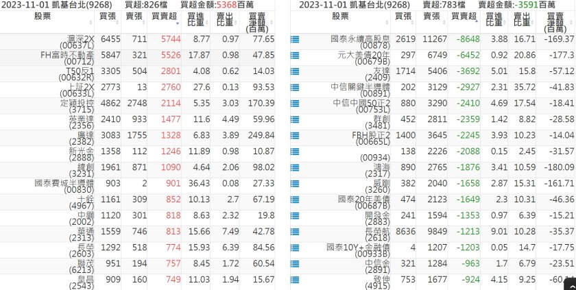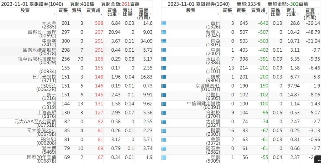 2023-1101關鍵券商買賣超