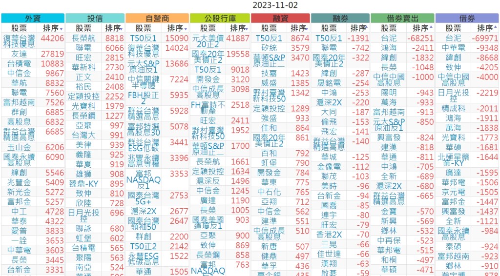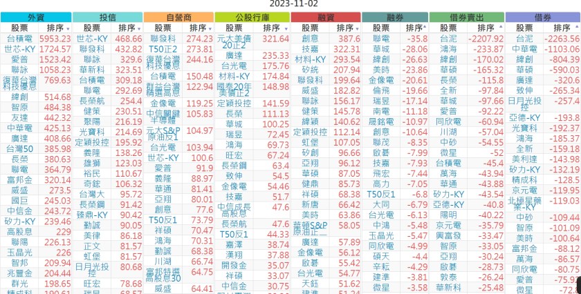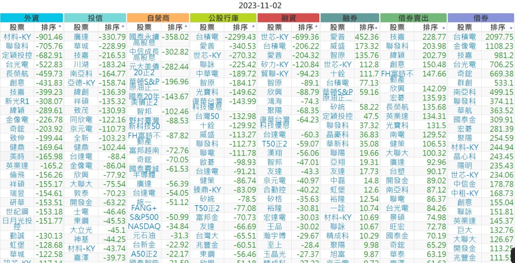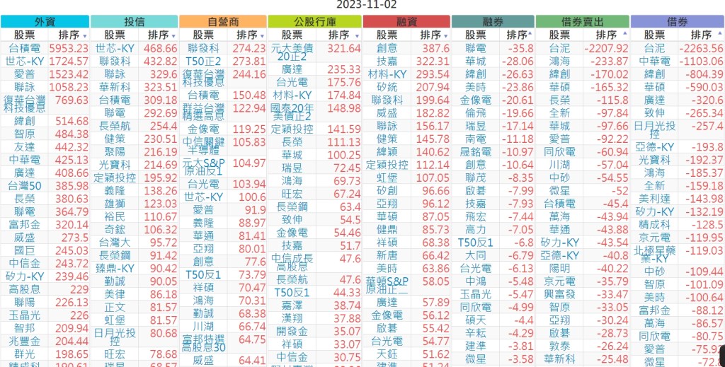 2023-1102上市【外資、投信】買賣超個股
