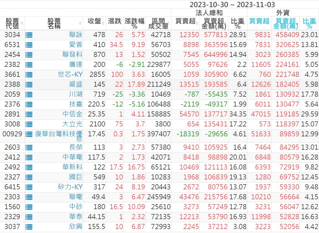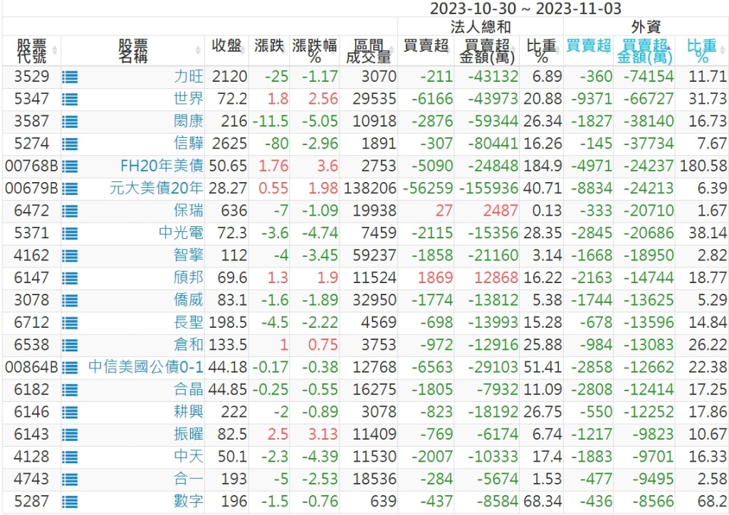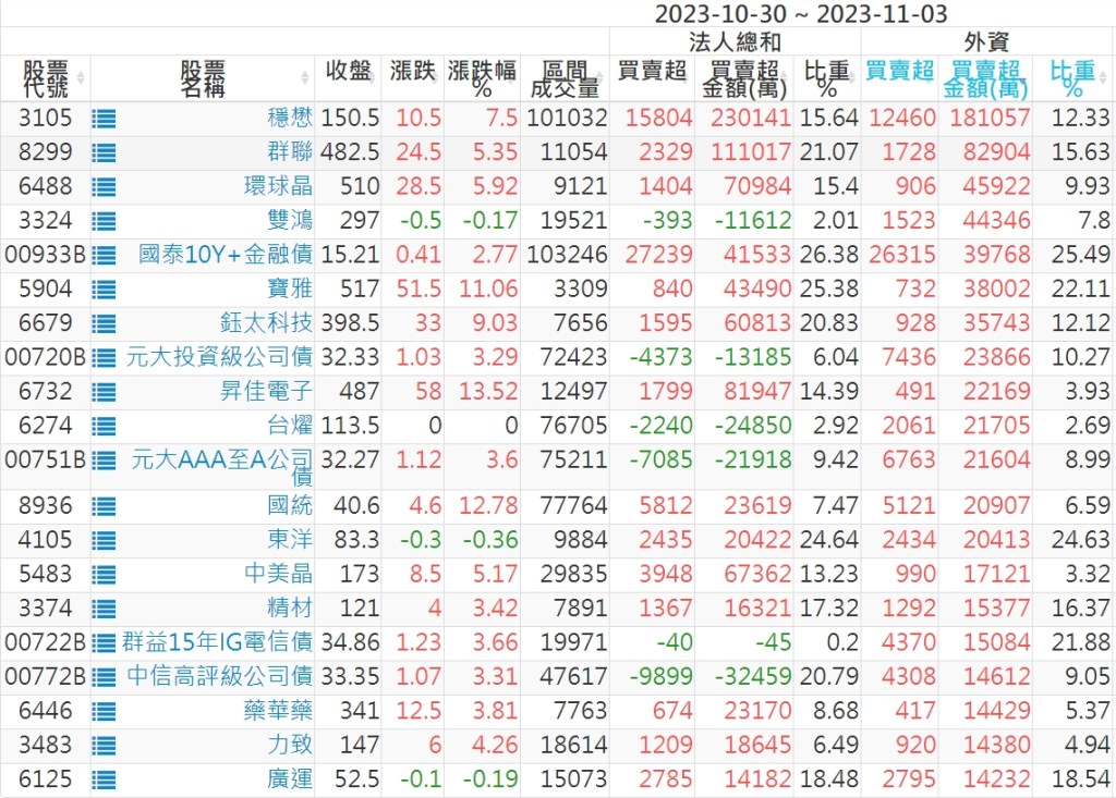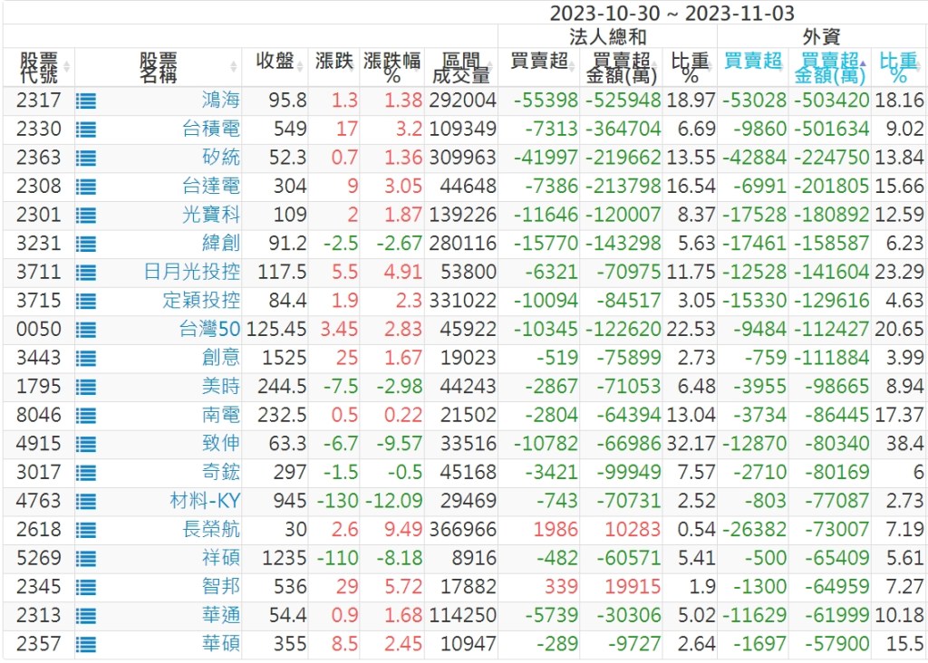 2023/10/30~2023/11/03近5日【外資】買賣超個股 2023-11-05 股狗網小編 投資誌-大盤 發表留言 投資達人APP上線囉!!!『安裝APP』: 外資本周累積【賣超】約37億元。 【上市外資買超個股】(以金額排行,單位:萬) 【上市外資賣超個股】(以金額排行,單位:萬) 【上櫃外資買超個股】(以金額排行,單位:萬) 【上櫃外資賣超個股】(以金額排行,單位:萬) 免責宣言 本網站文章所提供資訊僅供參考,並無任何推介買賣之意,投資人應自行承擔交易風險。 分享此文: 分享到 X(在新視窗中開啟) X 分享到 Facebook(在新視窗中開啟) Facebook 喜歡 正在載入...