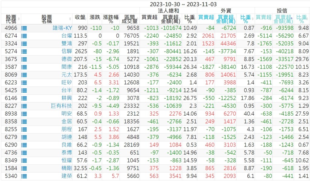 2023/10/30~2023/11/03近5日【投信】買賣超個股 2023-11-05 股狗網小編 投資誌-大盤 發表留言 投資達人APP上線囉!!!『安裝APP』: 【上市投信買超個股】(以金額排行,單位:萬) 【上市投信賣超個股】(以金額排行,單位:萬) 【上櫃投信買超個股】(以金額排行,單位:萬) 【上櫃投信賣超個股】(以金額排行,單位:萬) 免責宣言 本網站文章所提供資訊僅供參考,並無任何推介買賣之意,投資人應自行承擔交易風險。 分享此文: 分享到 X(在新視窗中開啟) X 分享到 Facebook(在新視窗中開啟) Facebook 喜歡 正在載入...