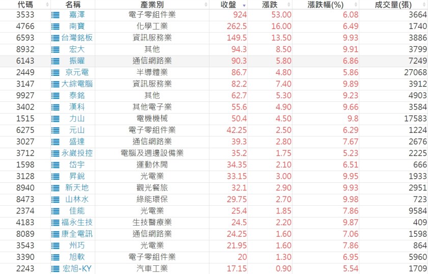 2023-1113股價創20日新高爆量上漲股 2023-11-14 股狗網小編 選股條件 發表留言 投資達人APP上線囉!!!『安裝APP』: 利用股狗選股的選股條件可以【挑選突破20日新高,爆量上漲起漲點股票】 1.股狗選股 https://www.stockdog.com.tw 2.選股條件: a.收盤價創20日新高 b.當日漲幅 > 2% C.成交量大於5日均量2倍 免責宣言 本網站文章所提供資訊僅供參考,並無任何推介買賣之意,投資人應自行承擔交易風險。 分享此文: 分享到 X(在新視窗中開啟) X 分享到 Facebook(在新視窗中開啟) Facebook 喜歡 正在載入...