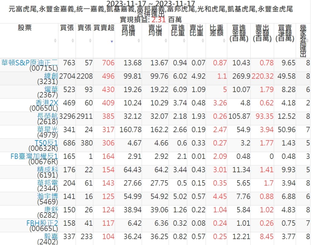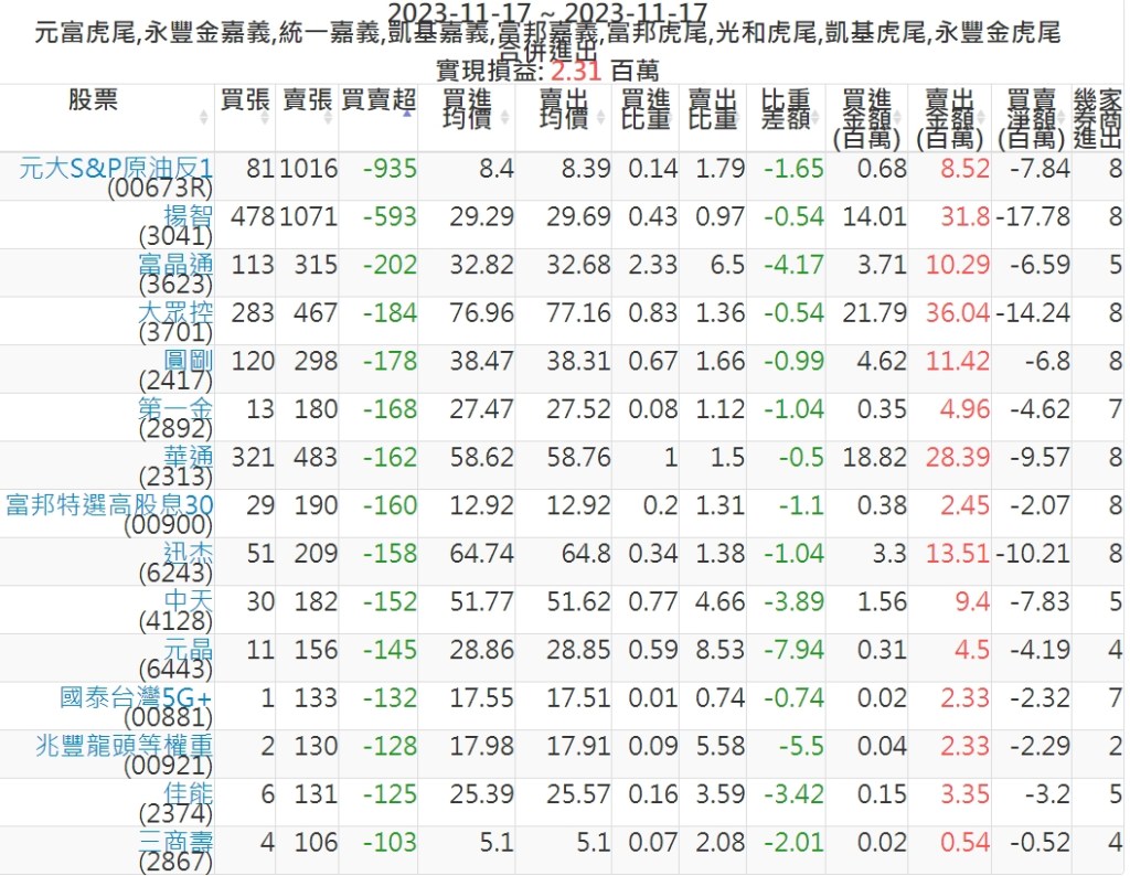 2023-1117主力買賣超個股 2023-11-18 股狗網小編 籌碼面每日資訊 發表留言 投資達人APP上線囉!!!『安裝APP』: 可參考下文 『如何查詢當沖、隔日沖分公司券商買賣』 主力當沖券商: 『元富虎尾』,『永豐金嘉義』,『統一嘉義』,『凱基嘉義』,『富邦嘉義』,『富邦虎尾』,『光和虎尾』,『凱基虎尾』,『永豐金虎尾』。 『當沖標的』 『買超股票』 『賣超股票』 免責宣言 本網站文章所提供資訊僅供參考,並無任何推介買賣之意,投資人應自行承擔交易風險。 分享此文: 分享到 X(在新視窗中開啟) X 分享到 Facebook(在新視窗中開啟) Facebook 喜歡 正在載入...