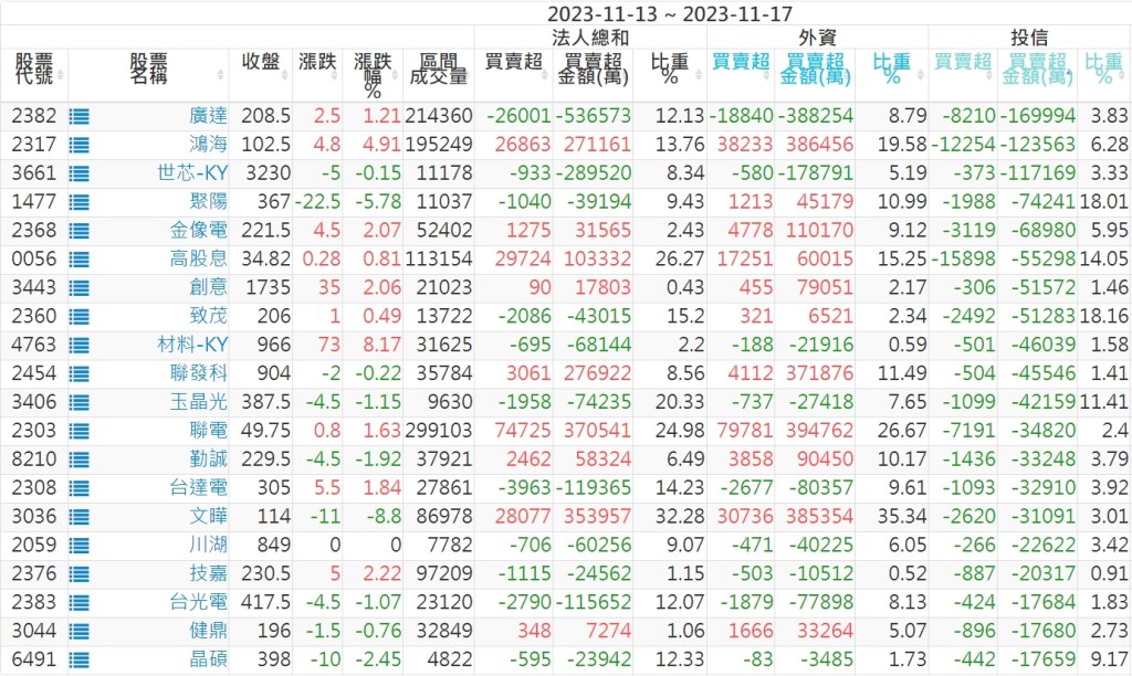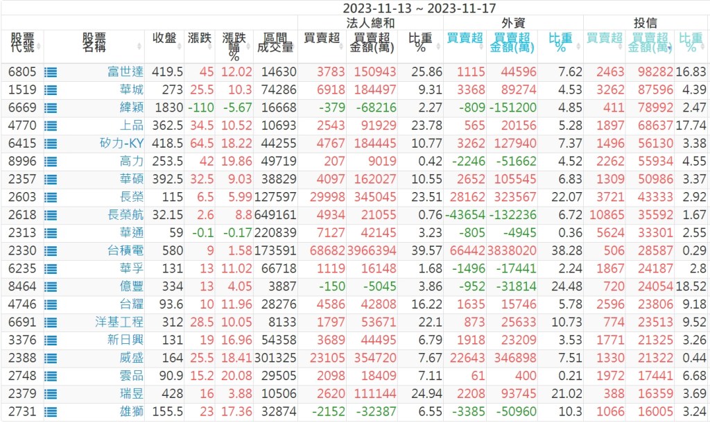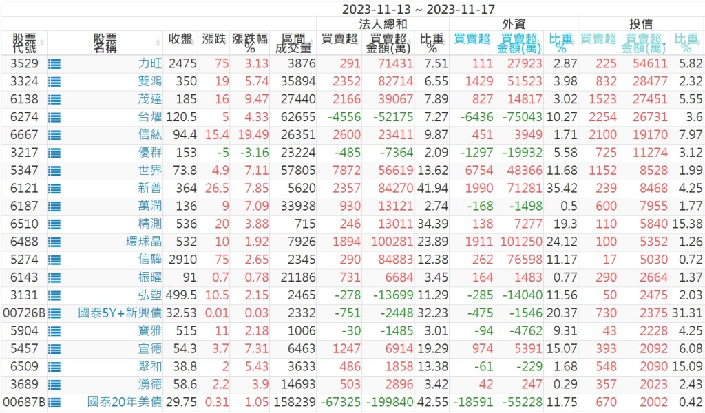 2023/11/13~2023/11/17近5日【投信】買賣超個股 2023-11-19 股狗網小編 投資誌-大盤 發表留言 投資達人APP上線囉!!!『安裝APP』: 【上市投信買超個股】(以金額排行,單位:萬) 【上市投信賣超個股】(以金額排行,單位:萬) 【上櫃投信買超個股】(以金額排行,單位:萬) 【上櫃投信賣超個股】(以金額排行,單位:萬) 免責宣言 本網站文章所提供資訊僅供參考,並無任何推介買賣之意,投資人應自行承擔交易風險。 分享此文: 分享到 X(在新視窗中開啟) X 分享到 Facebook(在新視窗中開啟) Facebook 喜歡 正在載入...