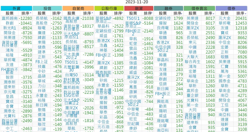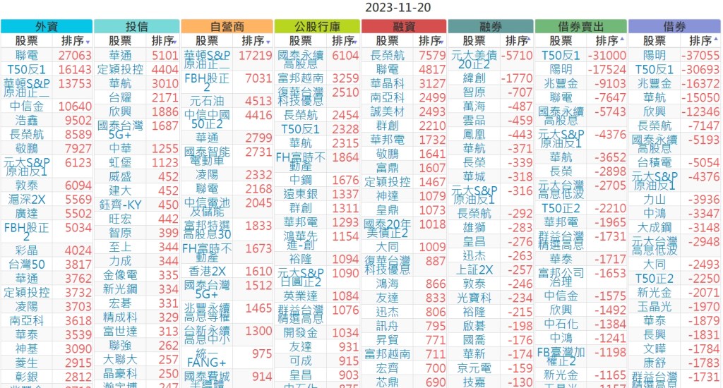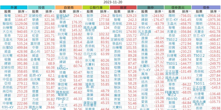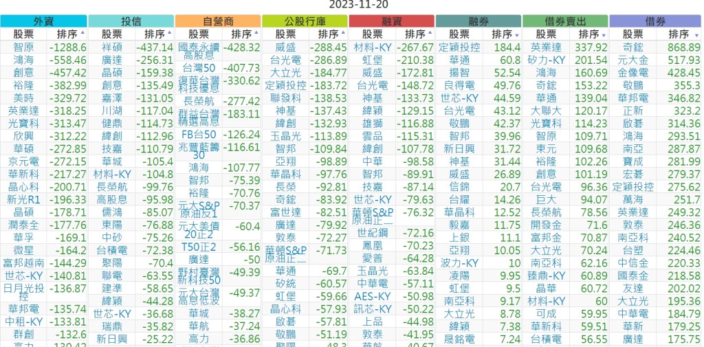 上市:【外資、投信】賣超(依張數)   (單位:張數)