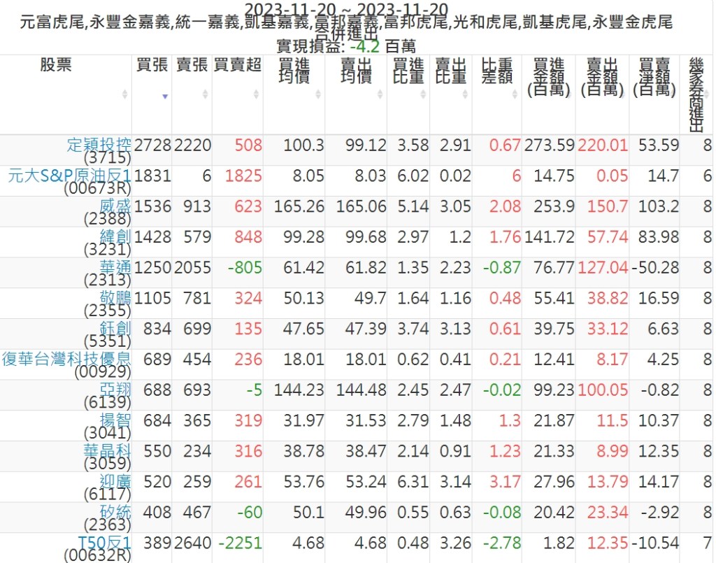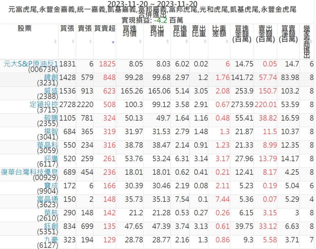 2023-1120主力買賣超個股 2023-11-21 股狗網小編 籌碼面每日資訊 發表留言 投資達人APP上線囉!!!『安裝APP』: 可參考下文 『如何查詢當沖、隔日沖分公司券商買賣』 主力當沖券商: 『元富虎尾』,『永豐金嘉義』,『統一嘉義』,『凱基嘉義』,『富邦嘉義』,『富邦虎尾』,『光和虎尾』,『凱基虎尾』,『永豐金虎尾』。 『當沖標的』 『買超股票』 『賣超股票』 免責宣言 本網站文章所提供資訊僅供參考,並無任何推介買賣之意,投資人應自行承擔交易風險。 分享此文: 分享到 X(在新視窗中開啟) X 分享到 Facebook(在新視窗中開啟) Facebook 喜歡 正在載入...