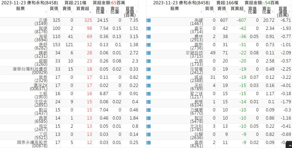 2023-1123關鍵券商買賣超 2023-11-23 股狗網小編 籌碼面每日資訊 發表留言 投資達人APP上線囉!!!『安裝APP』: 關鍵券商買賣超: 臺銀證券(1040): 台灣摩根士丹利(1470): 凱基台北(9268): 凱基信義(9216): 元大土城永寧(9875): 康和永和(845B) : 富邦建國(9658): 免責宣言 本網站文章所提供資訊僅供參考,並無任何推介買賣之意,投資人應自行承擔交易風險。 分享此文: 按一下即可分享至 X(在新視窗中開啟) X 按一下以分享至 Facebook(在新視窗中開啟) Facebook 喜歡 正在載入...