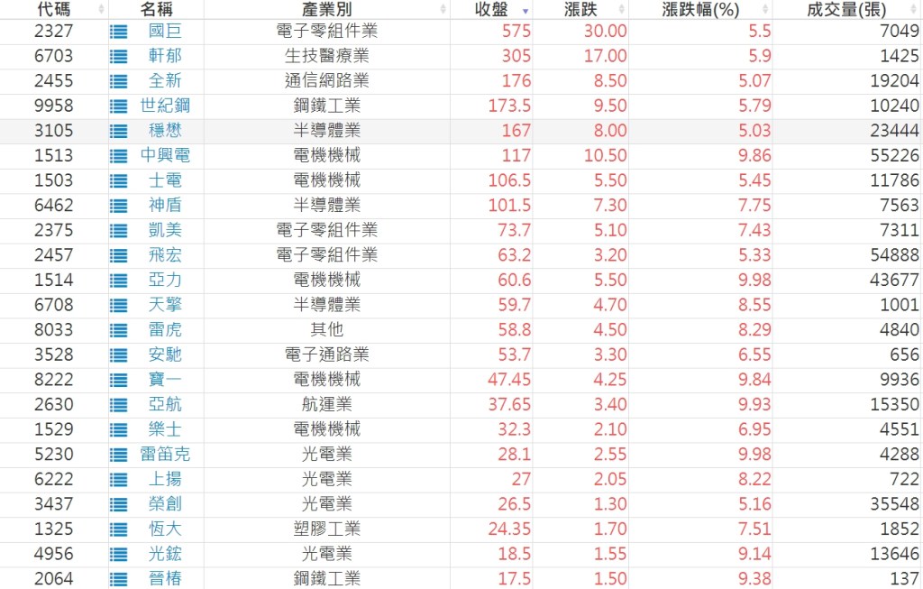 2023-1124股價創20日新高爆量上漲股 2023-11-25 股狗網小編 選股條件 發表留言 投資達人APP上線囉!!!『安裝APP』: 利用股狗選股的選股條件可以【挑選突破20日新高,爆量上漲起漲點股票】 1.股狗選股 https://www.stockdog.com.tw 2.選股條件: a.收盤價創20日新高 b.當日漲幅 > 2% C.成交量大於5日均量2倍 免責宣言 本網站文章所提供資訊僅供參考,並無任何推介買賣之意,投資人應自行承擔交易風險。 分享此文: 按一下即可分享至 X(在新視窗中開啟) X 按一下以分享至 Facebook(在新視窗中開啟) Facebook 喜歡 正在載入...