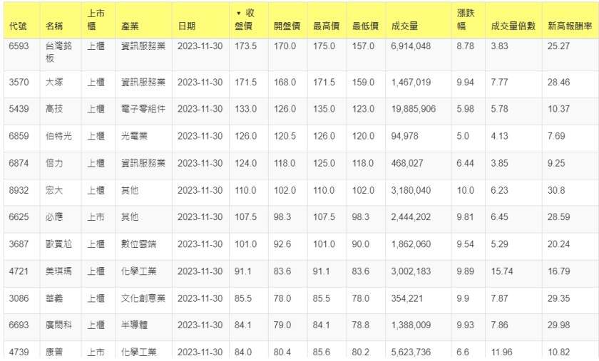 2023-1130股價創20日新高爆量上漲股 2023-11-30 股狗網小編 選股條件 發表留言 投資達人APP上線囉!!!『安裝APP』: 利用股狗選股的選股條件可以【挑選突破20日新高,爆量上漲起漲點股票】 1.股狗選股 https://www.stockdog.com.tw 2.選股條件: a.收盤價創20日新高 b.當日漲幅 > 2% C.成交量大於5日均量2倍 免責宣言 本網站文章所提供資訊僅供參考,並無任何推介買賣之意,投資人應自行承擔交易風險。 分享此文: 按一下即可分享至 X(在新視窗中開啟) X 按一下以分享至 Facebook(在新視窗中開啟) Facebook 喜歡 正在載入...