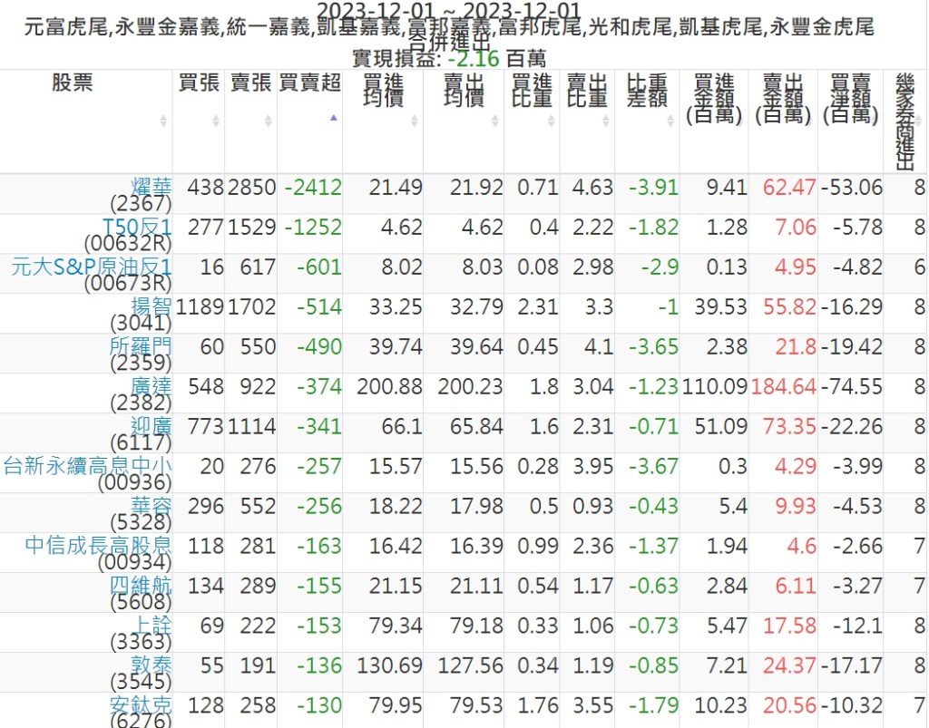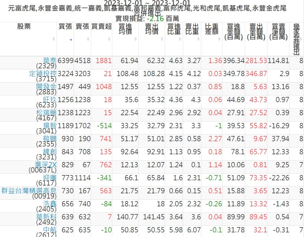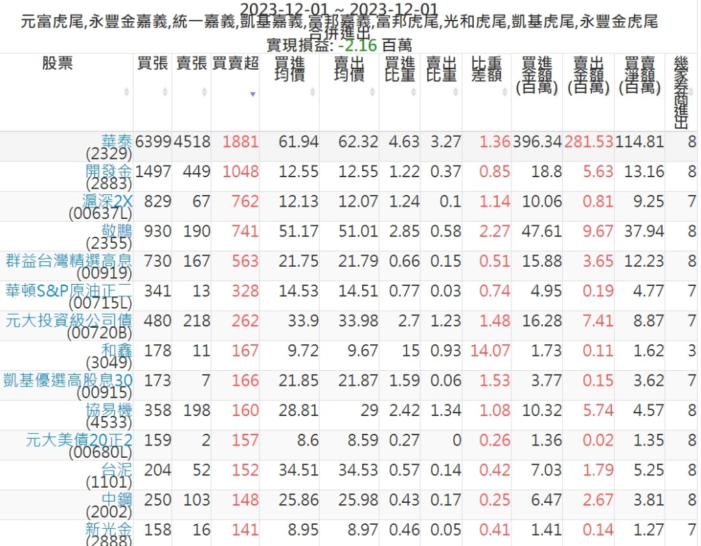 2023-1201主力買賣超個股 2023-12-02 股狗網小編 籌碼面每日資訊 發表留言 可參考下文 『如何查詢當沖、隔日沖分公司券商買賣』 主力當沖券商: 『元富虎尾』,『永豐金嘉義』,『統一嘉義』,『凱基嘉義』,『富邦嘉義』,『富邦虎尾』,『光和虎尾』,『凱基虎尾』,『永豐金虎尾』。 『當沖標的』 『買超股票』 『賣超股票』 免責宣言 本網站文章所提供資訊僅供參考,並無任何推介買賣之意,投資人應自行承擔交易風險。 分享此文: 按一下即可分享至 X(在新視窗中開啟) X 按一下以分享至 Facebook(在新視窗中開啟) Facebook 喜歡 正在載入...