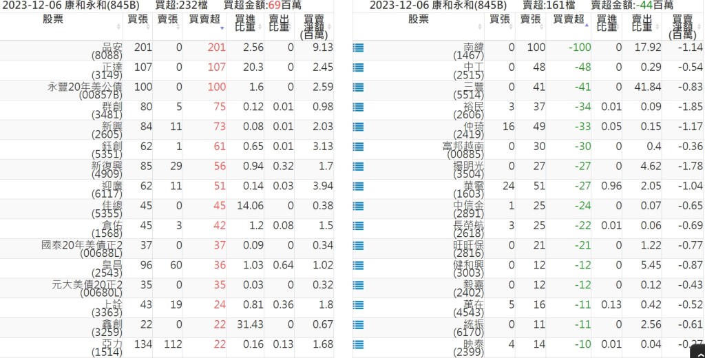 2023-1206關鍵券商買賣超 2023-12-07 股狗網小編 籌碼面每日資訊 發表留言 關鍵券商買賣超: 臺銀證券(1040): 台灣摩根士丹利(1470): 凱基台北(9268): 凱基信義(9216): 元大土城永寧(9875): 康和永和(845B) : 富邦建國(9658): 免責宣言 本網站文章所提供資訊僅供參考,並無任何推介買賣之意,投資人應自行承擔交易風險。 分享此文: 分享到 X(在新視窗中開啟) X 分享到 Facebook(在新視窗中開啟) Facebook 喜歡 正在載入...