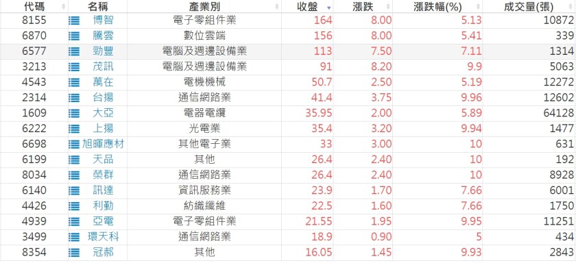2023-1207股價創20日新高爆量上漲股 2023-12-07 股狗網小編 選股條件 發表留言 利用股狗選股的選股條件可以【挑選突破20日新高,爆量上漲起漲點股票】 1.股狗選股 https://www.stockdog.com.tw 2.選股條件: a.收盤價創20日新高 b.當日漲幅 > 2% C.成交量大於5日均量2倍 免責宣言 本網站文章所提供資訊僅供參考,並無任何推介買賣之意,投資人應自行承擔交易風險。 分享此文: 分享到 X(在新視窗中開啟) X 分享到 Facebook(在新視窗中開啟) Facebook 喜歡 正在載入...