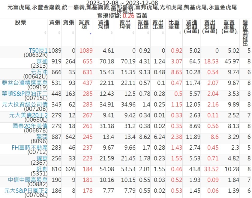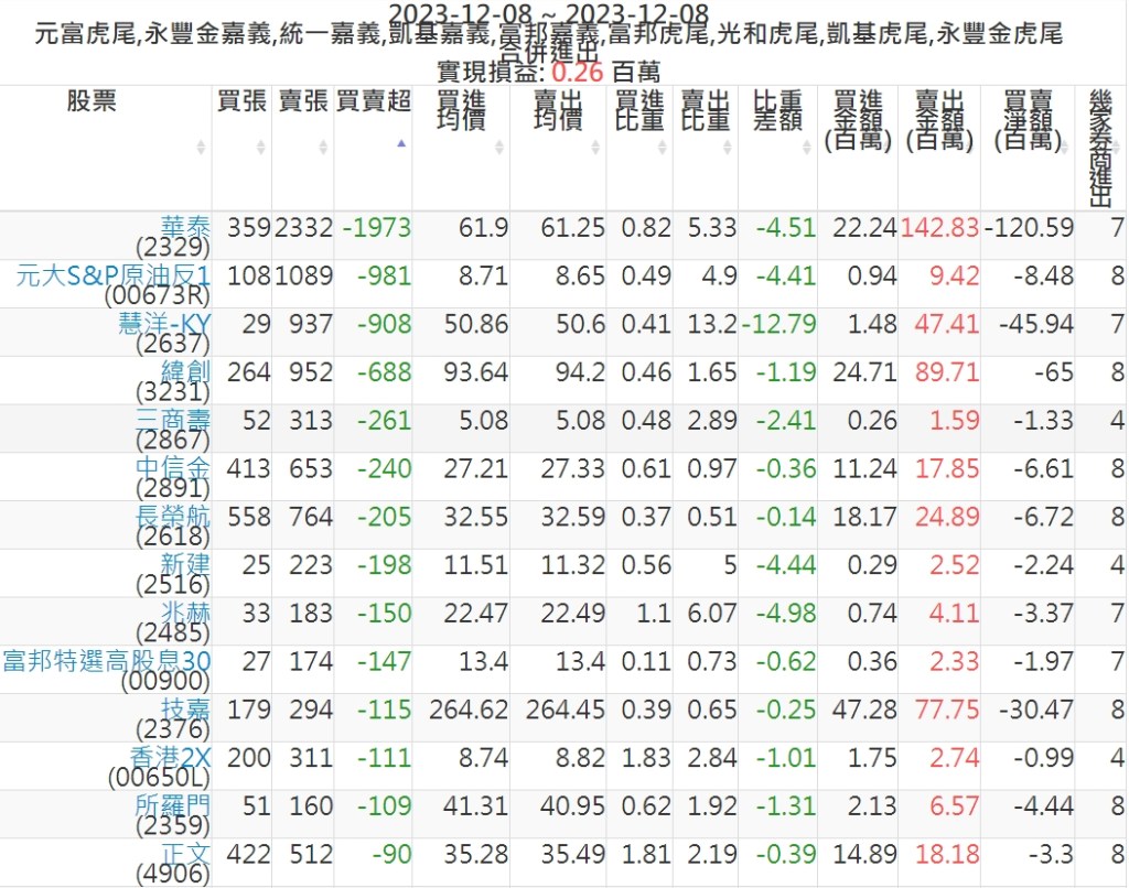 2023-1208主力買賣超個股 2023-12-09 股狗網小編 籌碼面每日資訊 發表留言 可參考下文 『如何查詢當沖、隔日沖分公司券商買賣』 主力當沖券商: 『元富虎尾』,『永豐金嘉義』,『統一嘉義』,『凱基嘉義』,『富邦嘉義』,『富邦虎尾』,『光和虎尾』,『凱基虎尾』,『永豐金虎尾』。 『當沖標的』 『買超股票』 『賣超股票』 免責宣言 本網站文章所提供資訊僅供參考,並無任何推介買賣之意,投資人應自行承擔交易風險。 分享此文: 分享到 X(在新視窗中開啟) X 分享到 Facebook(在新視窗中開啟) Facebook 喜歡 正在載入...