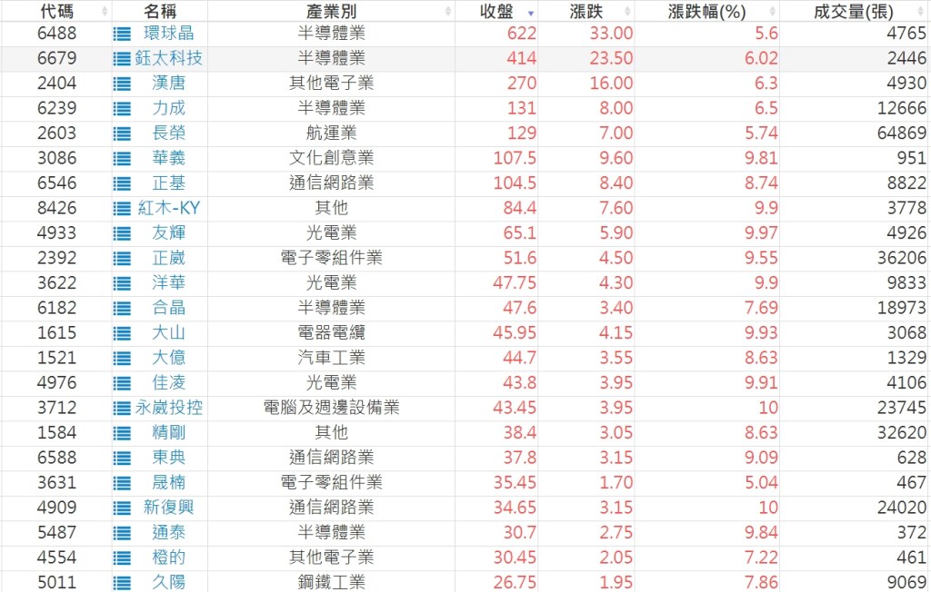 2023-1212股價創20日新高爆量上漲股 2023-12-12 股狗網小編 選股條件 發表留言 利用股狗選股的選股條件可以【挑選突破20日新高,爆量上漲起漲點股票】 1.股狗選股 https://www.stockdog.com.tw 2.選股條件: a.收盤價創20日新高 b.當日漲幅 > 2% C.成交量大於5日均量2倍 免責宣言 本網站文章所提供資訊僅供參考,並無任何推介買賣之意,投資人應自行承擔交易風險。 分享此文: 分享到 X(在新視窗中開啟) X 分享到 Facebook(在新視窗中開啟) Facebook 喜歡 正在載入...