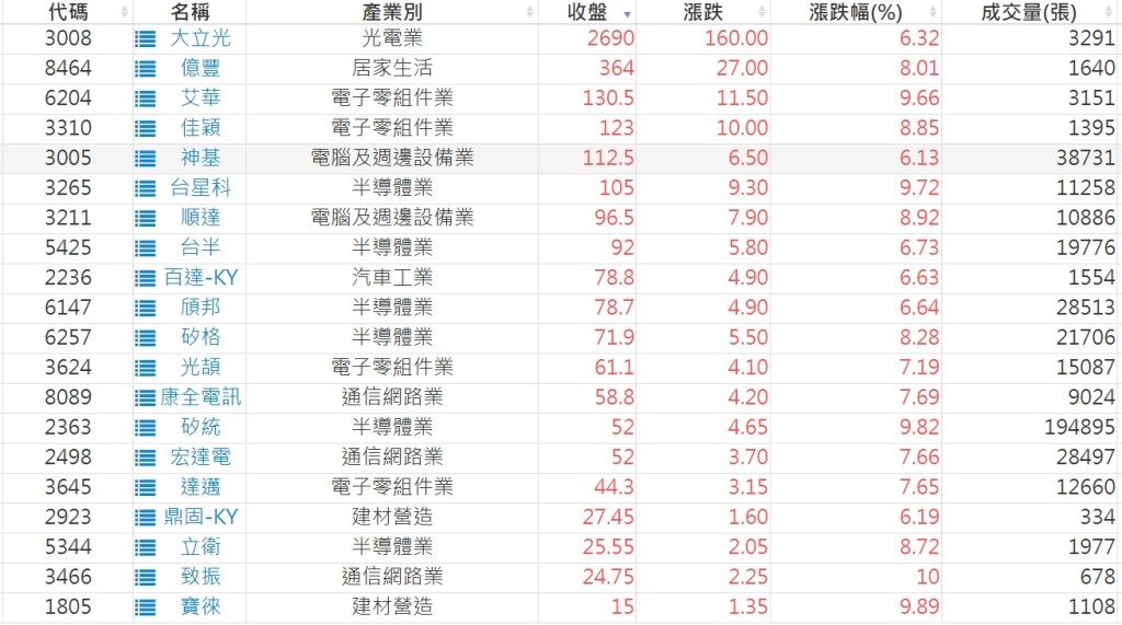 2023-1214股價創20日新高爆量上漲股 2023-12-14 股狗網小編 選股條件 發表留言 利用股狗選股的選股條件可以【挑選突破20日新高,爆量上漲起漲點股票】 1.股狗選股 https://www.stockdog.com.tw 2.選股條件: a.收盤價創20日新高 b.當日漲幅 > 2% C.成交量大於5日均量2倍 免責宣言 本網站文章所提供資訊僅供參考,並無任何推介買賣之意,投資人應自行承擔交易風險。 分享此文: 分享到 X(在新視窗中開啟) X 分享到 Facebook(在新視窗中開啟) Facebook 喜歡 正在載入...
