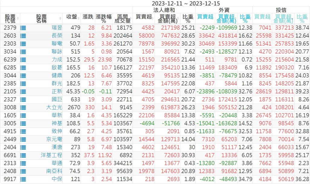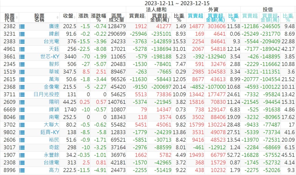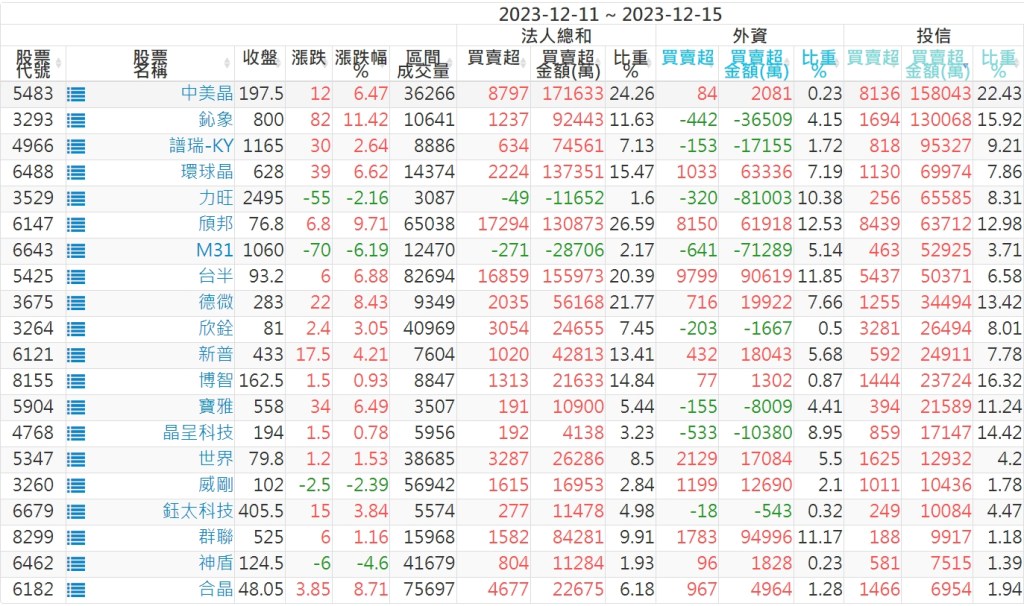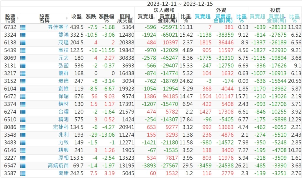 2023/12/11~2023/12/15近5日【投信】買賣超個股 2023-12-17 股狗網小編 投資誌-大盤 發表留言 投資達人APP上線囉!!!『安裝APP』: 【上市投信買超個股】(以金額排行,單位:萬) 【上市投信賣超個股】(以金額排行,單位:萬) 【上櫃投信買超個股】(以金額排行,單位:萬) 【上櫃投信賣超個股】(以金額排行,單位:萬) 免責宣言 本網站文章所提供資訊僅供參考,並無任何推介買賣之意,投資人應自行承擔交易風險。 分享此文: 分享到 X(在新視窗中開啟) X 分享到 Facebook(在新視窗中開啟) Facebook 喜歡 正在載入...