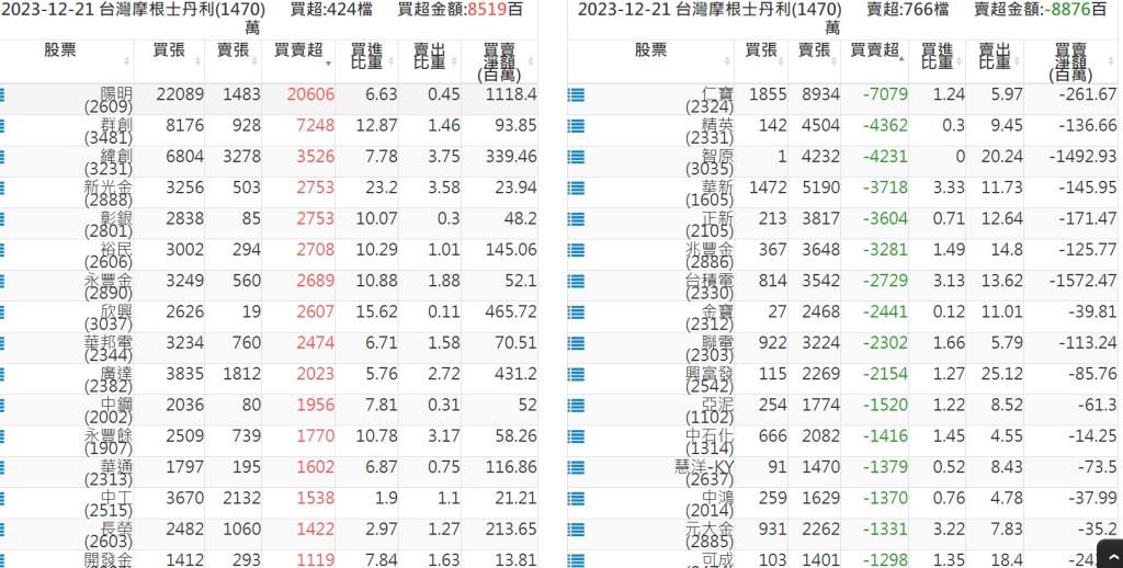 2023-1221關鍵券商買賣超 2023-12-22 股狗網小編 籌碼面每日資訊 發表留言 關鍵券商買賣超: 臺銀證券(1040): 台灣摩根士丹利(1470): 凱基台北(9268): 凱基信義(9216): 元大土城永寧(9875): 康和永和(845B) : 富邦建國(9658): 免責宣言 本網站文章所提供資訊僅供參考,並無任何推介買賣之意,投資人應自行承擔交易風險。 分享此文: 分享到 X(在新視窗中開啟) X 分享到 Facebook(在新視窗中開啟) Facebook 喜歡 正在載入...
