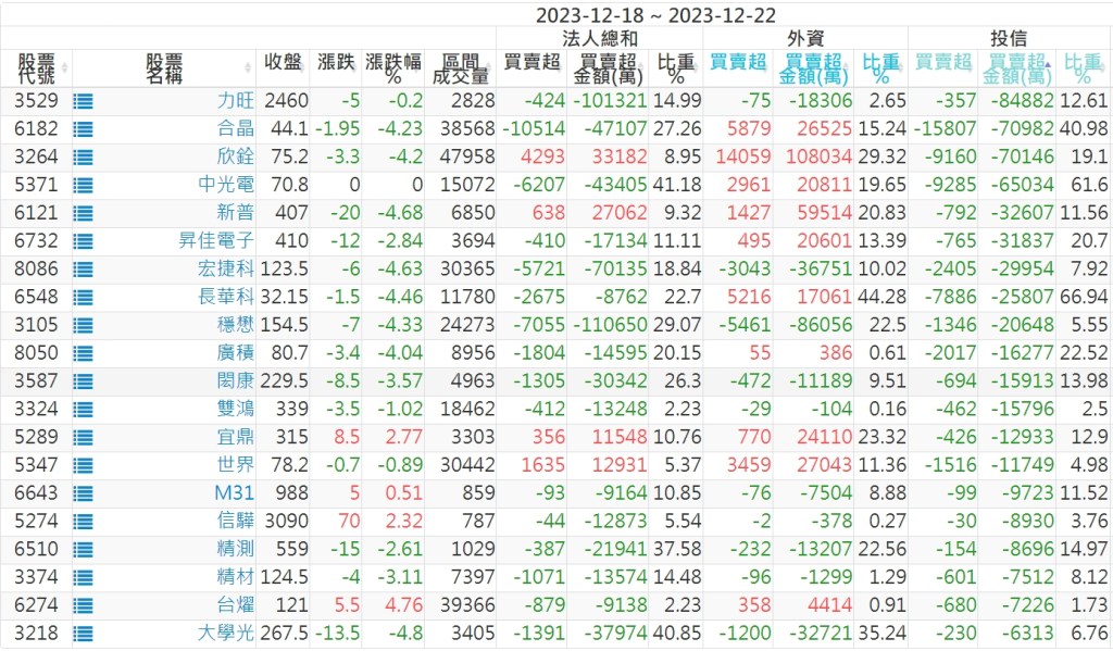 2023/12/18~2023/12/22近5日【投信】買賣超個股 2023-12-24 股狗網小編 投資誌-大盤 發表留言 投資達人APP上線囉!!!『安裝APP』: 【上市投信買超個股】(以金額排行,單位:萬) 【上市投信賣超個股】(以金額排行,單位:萬) 【上櫃投信買超個股】(以金額排行,單位:萬) 【上櫃投信賣超個股】(以金額排行,單位:萬) 免責宣言 本網站文章所提供資訊僅供參考,並無任何推介買賣之意,投資人應自行承擔交易風險。 分享此文: 按一下即可分享至 X(在新視窗中開啟) X 按一下以分享至 Facebook(在新視窗中開啟) Facebook 喜歡 正在載入...
