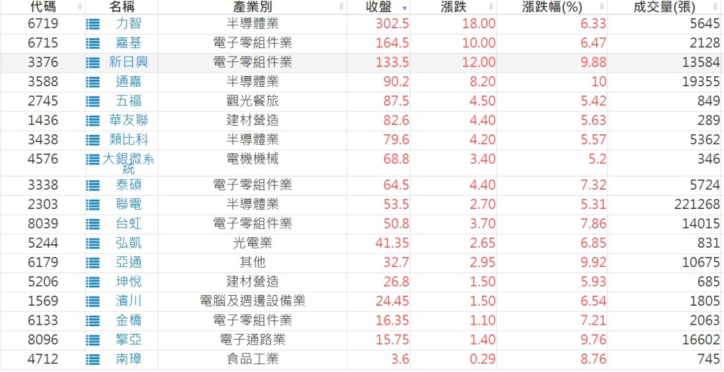2023-1227股價創20日新高爆量上漲股 2023-12-27 股狗網小編 選股條件 發表留言 利用股狗選股的選股條件可以【挑選突破20日新高,爆量上漲起漲點股票】 1.股狗選股 https://www.stockdog.com.tw 2.選股條件: a.收盤價創20日新高 b.當日漲幅 > 2% C.成交量大於5日均量2倍 免責宣言 本網站文章所提供資訊僅供參考,並無任何推介買賣之意,投資人應自行承擔交易風險。 分享此文: 按一下即可分享至 X(在新視窗中開啟) X 按一下以分享至 Facebook(在新視窗中開啟) Facebook 喜歡 正在載入...