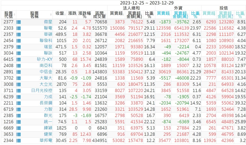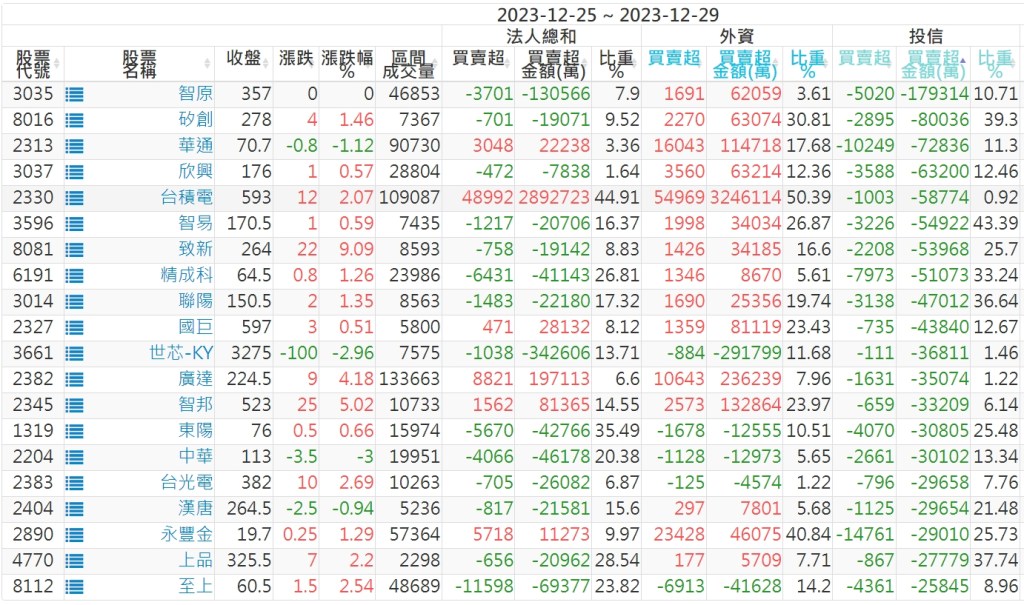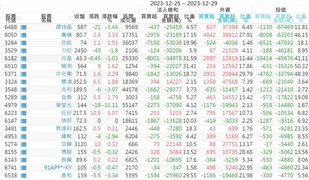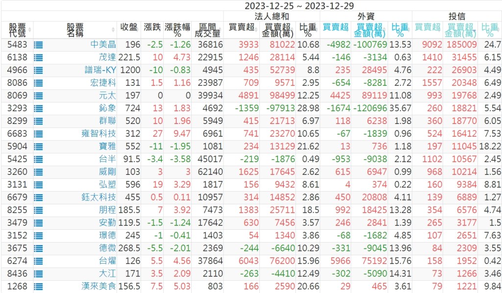 2023/12/25~2023/12/29近5日【投信】買賣超個股 2023-12-31 股狗網小編 投資誌-大盤 發表留言 投資達人APP上線囉!!!『安裝APP』: 【上市投信買超個股】(以金額排行,單位:萬) 【上市投信賣超個股】(以金額排行,單位:萬) 【上櫃投信買超個股】(以金額排行,單位:萬) 【上櫃投信賣超個股】(以金額排行,單位:萬) 免責宣言 本網站文章所提供資訊僅供參考,並無任何推介買賣之意,投資人應自行承擔交易風險。 分享此文: 按一下即可分享至 X(在新視窗中開啟) X 按一下以分享至 Facebook(在新視窗中開啟) Facebook 喜歡 正在載入...
