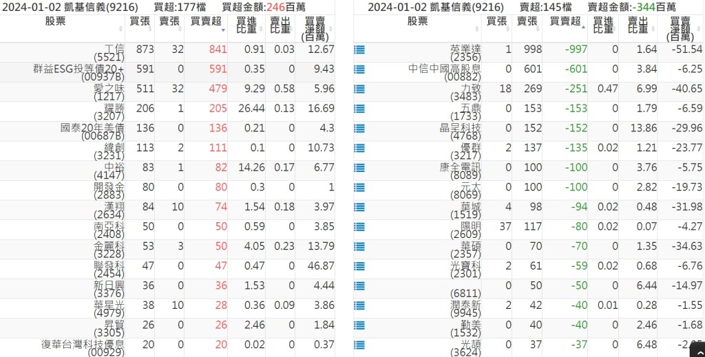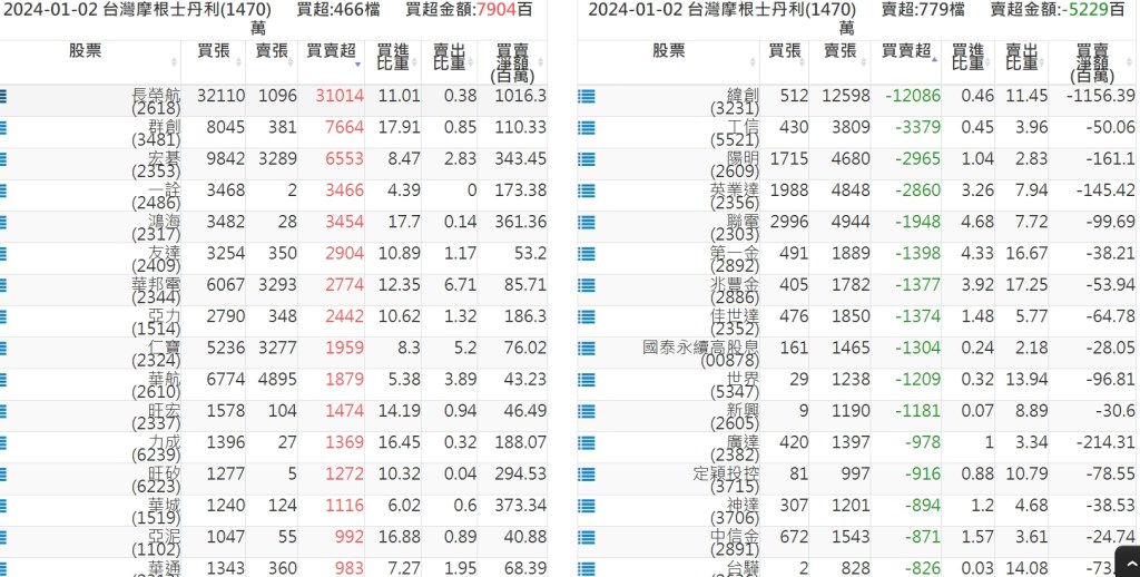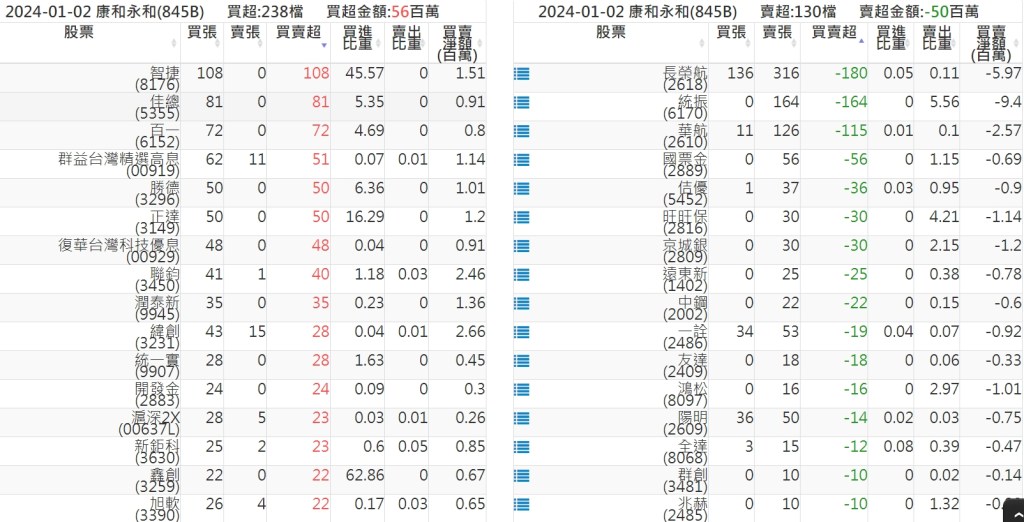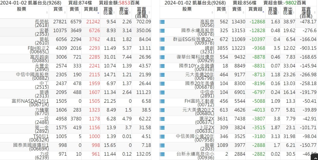 2024-0102關鍵券商買賣超 2024-01-02 股狗網小編 籌碼面每日資訊 發表留言 關鍵券商買賣超: 臺銀證券(1040): 台灣摩根士丹利(1470): 凱基台北(9268): 凱基信義(9216): 元大土城永寧(9875): 康和永和(845B) : 富邦建國(9658): 免責宣言 本網站文章所提供資訊僅供參考,並無任何推介買賣之意,投資人應自行承擔交易風險。 分享此文: 按一下即可分享至 X(在新視窗中開啟) X 按一下以分享至 Facebook(在新視窗中開啟) Facebook 喜歡 正在載入...
