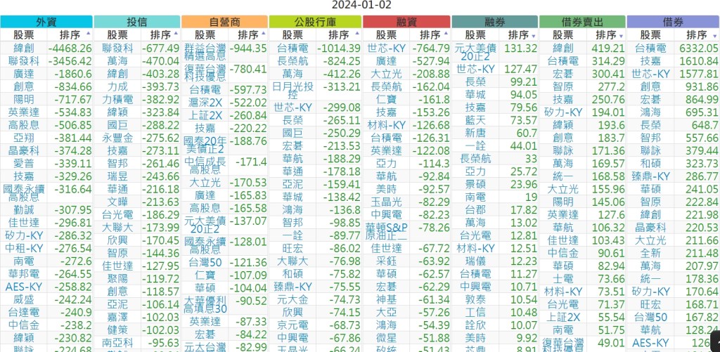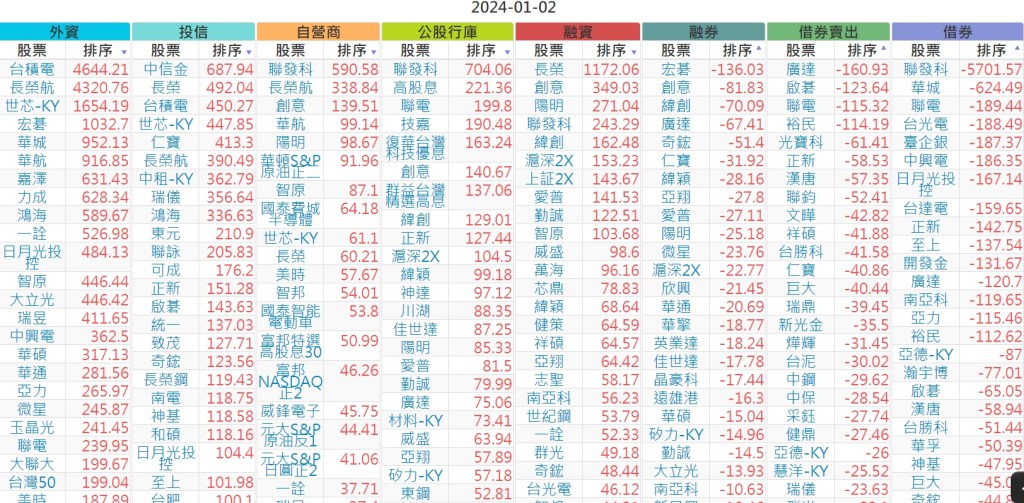 2024-0102上市【外資、投信】買賣超個股 2024-01-03 股狗網小編 投資誌-大盤 發表留言 上市:【外資、投信】買超(依金額) (單位:百萬) 上市:【外資、投信】賣超(依金額) (單位:百萬) 上市:【外資、投信】買超(依張數) (單位:張數) 上市:【外資、投信】賣超(依張數) (單位:張數) 免責宣言 本網站文章所提供資訊僅供參考,並無任何推介買賣之意,投資人應自行承擔交易風險。 分享此文: 按一下即可分享至 X(在新視窗中開啟) X 按一下以分享至 Facebook(在新視窗中開啟) Facebook 喜歡 正在載入...