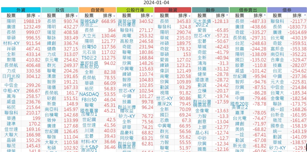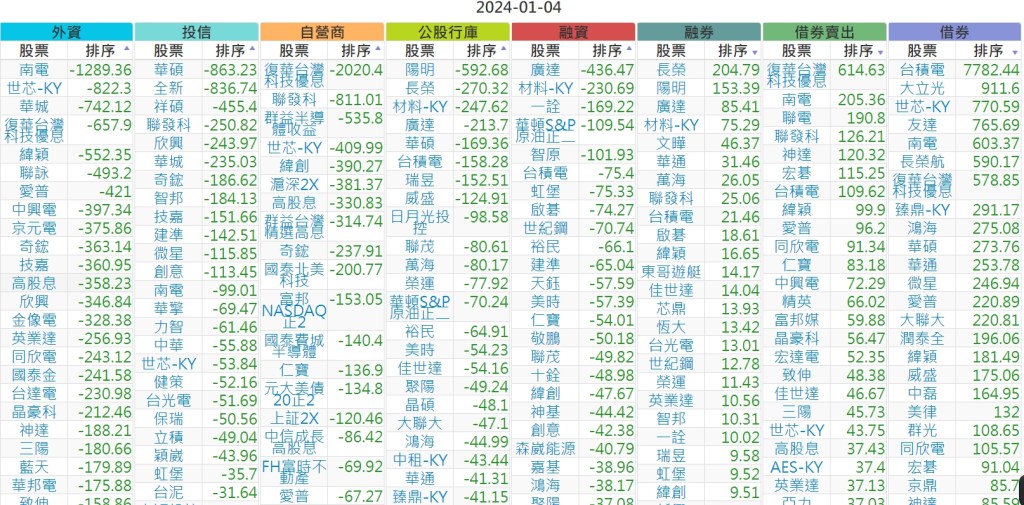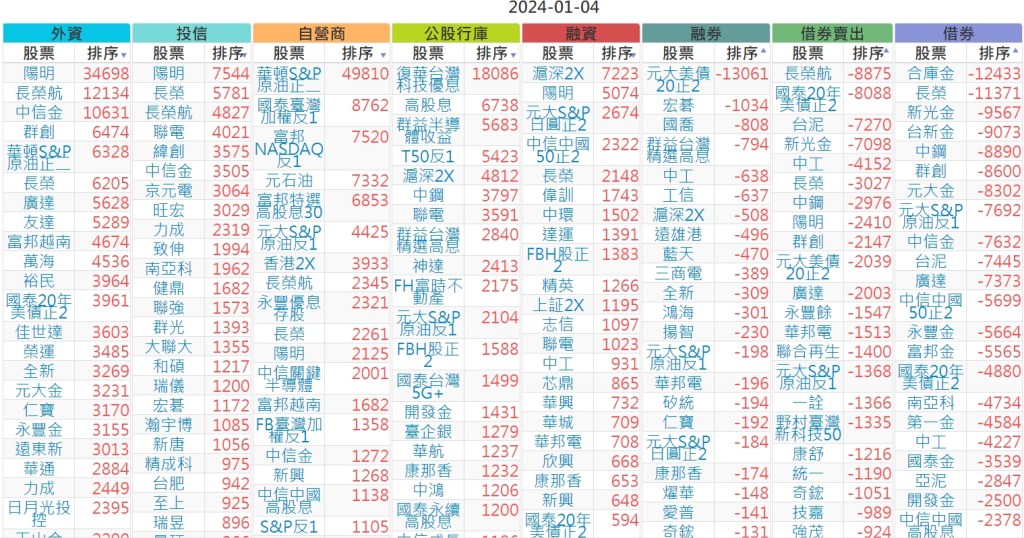 2024-0104上市【外資、投信】買賣超個股 2024-01-05 股狗網小編 投資誌-大盤 發表留言 上市:【外資、投信】買超(依金額) (單位:百萬) 上市:【外資、投信】賣超(依金額) (單位:百萬) 上市:【外資、投信】買超(依張數) (單位:張數) 上市:【外資、投信】賣超(依張數) (單位:張數) 免責宣言 本網站文章所提供資訊僅供參考,並無任何推介買賣之意,投資人應自行承擔交易風險。 分享此文: 分享到 X(在新視窗中開啟) X 分享到 Facebook(在新視窗中開啟) Facebook 喜歡 正在載入...