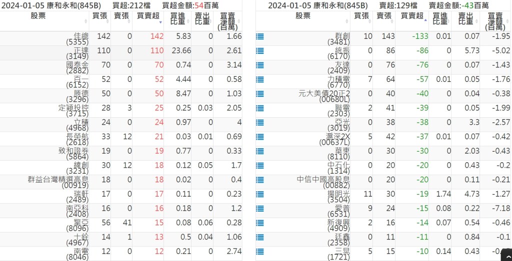 2024-0105關鍵券商買賣超 2024-01-05 股狗網小編 籌碼面每日資訊 發表留言 關鍵券商買賣超: 臺銀證券(1040): 台灣摩根士丹利(1470): 凱基台北(9268): 凱基信義(9216): 元大土城永寧(9875): 康和永和(845B) : 富邦建國(9658): 免責宣言 本網站文章所提供資訊僅供參考,並無任何推介買賣之意,投資人應自行承擔交易風險。 分享此文: 分享到 X(在新視窗中開啟) X 分享到 Facebook(在新視窗中開啟) Facebook 喜歡 正在載入...