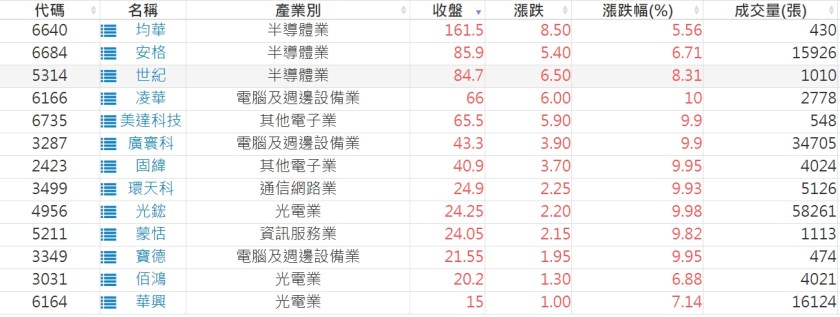 2024-0110股價創20日新高爆量上漲股 2024-01-10 股狗網小編 選股條件 發表留言 利用股狗選股的選股條件可以【挑選突破20日新高,爆量上漲起漲點股票】 1.股狗選股 https://www.stockdog.com.tw 2.選股條件: a.收盤價創20日新高 b.當日漲幅 > 2% C.成交量大於5日均量2倍 免責宣言 本網站文章所提供資訊僅供參考,並無任何推介買賣之意,投資人應自行承擔交易風險。 分享此文: 分享到 X(在新視窗中開啟) X 分享到 Facebook(在新視窗中開啟) Facebook 喜歡 正在載入...