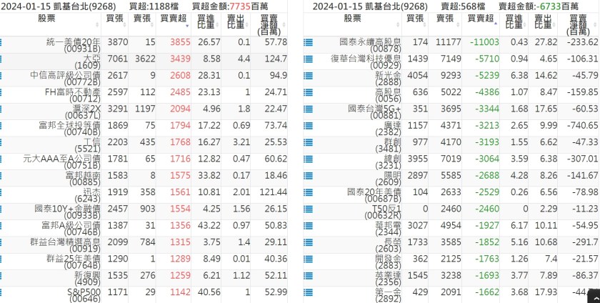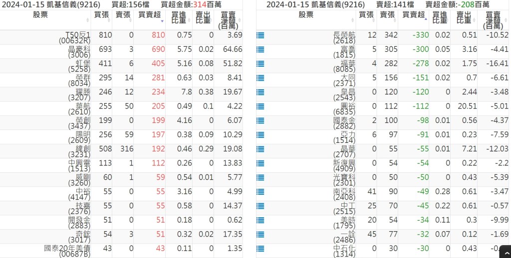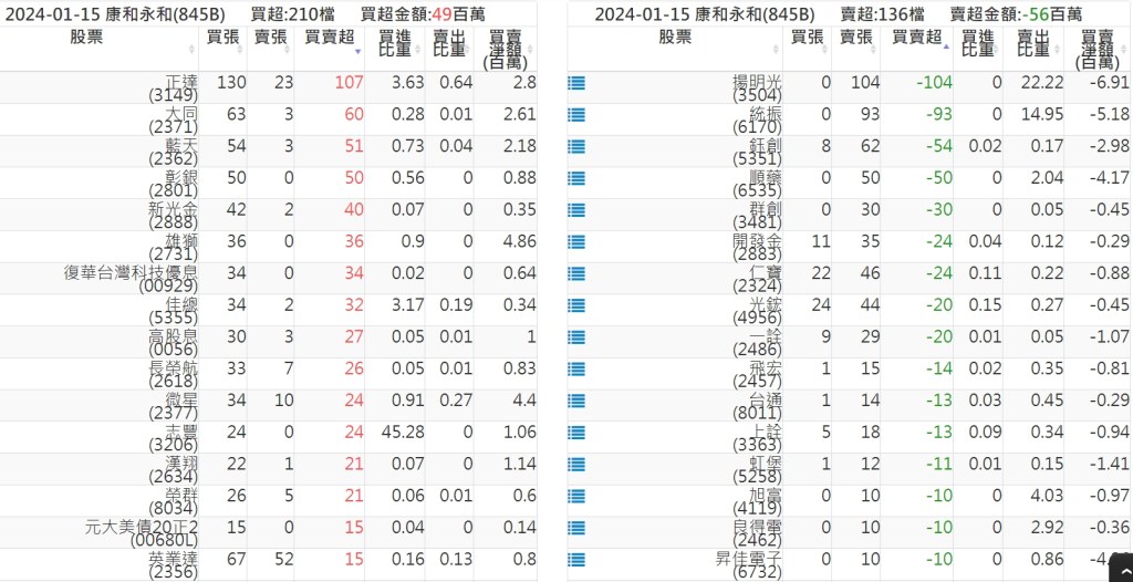 2024-0115關鍵券商買賣超 2024-01-15 股狗網小編 籌碼面每日資訊 發表留言 關鍵券商買賣超: 臺銀證券(1040): 台灣摩根士丹利(1470): 凱基台北(9268): 凱基信義(9216): 元大土城永寧(9875): 康和永和(845B) : 富邦建國(9658): 免責宣言 本網站文章所提供資訊僅供參考,並無任何推介買賣之意,投資人應自行承擔交易風險。 分享此文: 分享到 X(在新視窗中開啟) X 分享到 Facebook(在新視窗中開啟) Facebook 喜歡 正在載入...