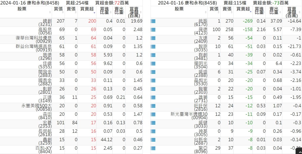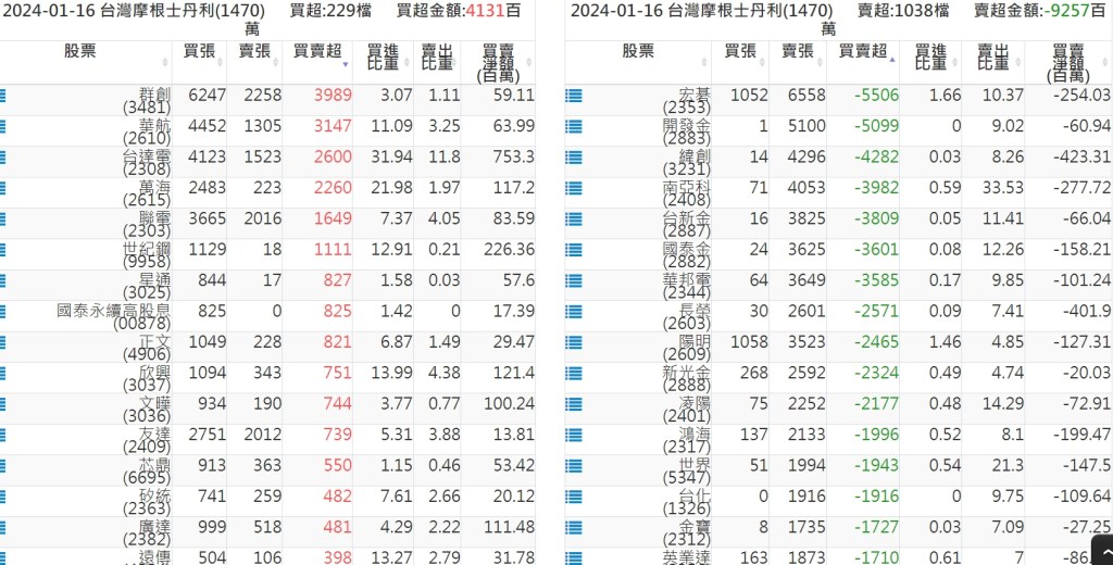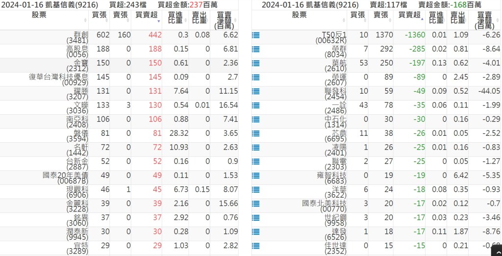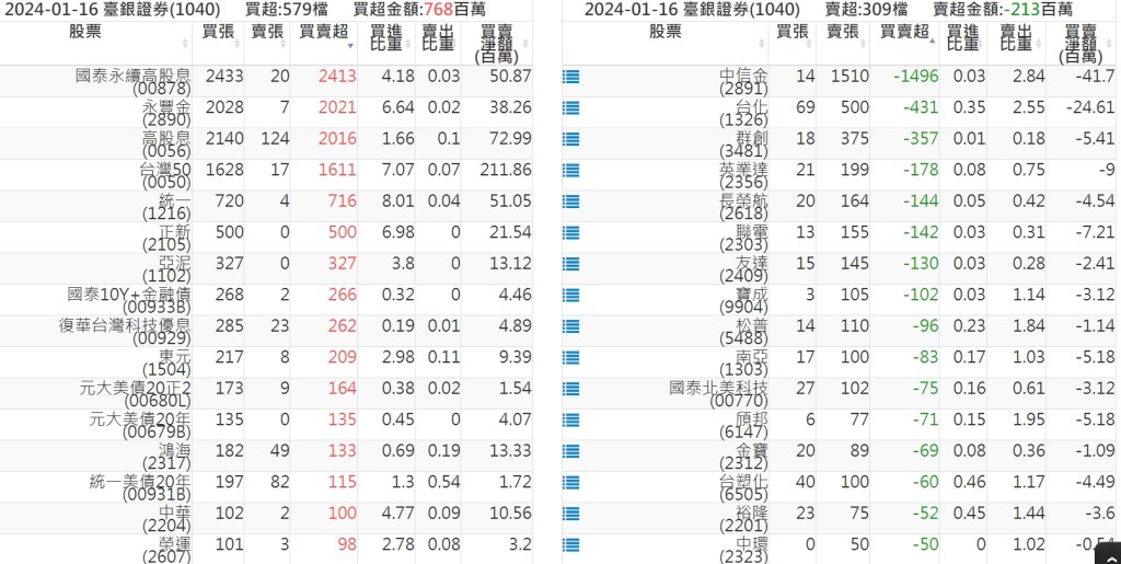 2024-0116關鍵券商買賣超 2024-01-17 股狗網小編 籌碼面每日資訊 發表留言 關鍵券商買賣超: 臺銀證券(1040): 台灣摩根士丹利(1470): 凱基台北(9268): 凱基信義(9216): 元大土城永寧(9875): 康和永和(845B) : 富邦建國(9658): 免責宣言 本網站文章所提供資訊僅供參考,並無任何推介買賣之意,投資人應自行承擔交易風險。 分享此文: 分享到 X(在新視窗中開啟) X 分享到 Facebook(在新視窗中開啟) Facebook 喜歡 正在載入...