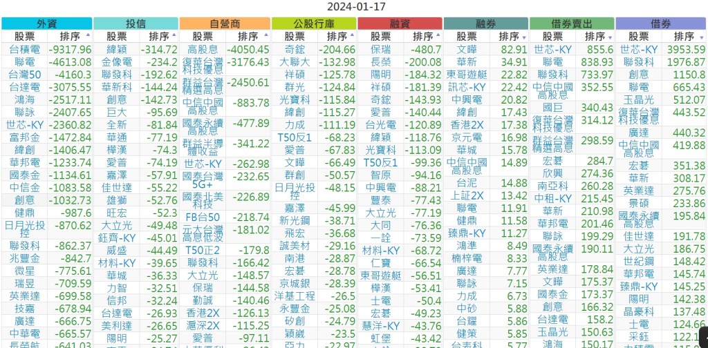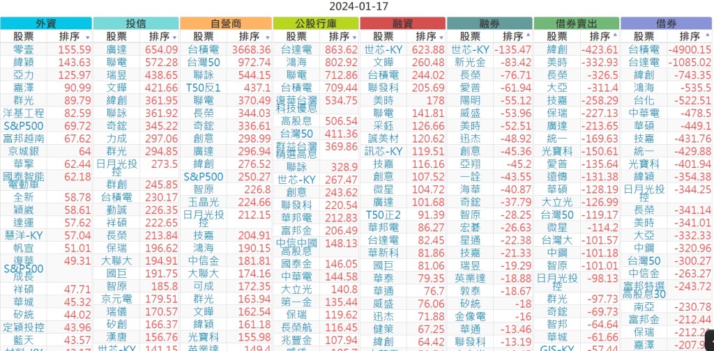 2024-0117上市【外資、投信】買賣超個股 2024-01-18 股狗網小編 投資誌-大盤 發表留言 上市:【外資、投信】買超(依金額) (單位:百萬) 上市:【外資、投信】賣超(依金額) (單位:百萬) 上市:【外資、投信】買超(依張數) (單位:張數) 上市:【外資、投信】賣超(依張數) (單位:張數) 免責宣言 本網站文章所提供資訊僅供參考,並無任何推介買賣之意,投資人應自行承擔交易風險。 分享此文: 分享到 X(在新視窗中開啟) X 分享到 Facebook(在新視窗中開啟) Facebook 喜歡 正在載入...