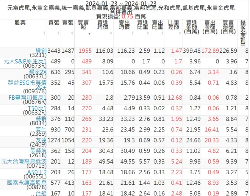 2024-0123主力買賣超個股 2024-01-23 股狗網小編 籌碼面每日資訊 發表留言 可參考下文 『如何查詢當沖、隔日沖分公司券商買賣』 主力當沖券商: 『元富虎尾』,『永豐金嘉義』,『統一嘉義』,『凱基嘉義』,『富邦嘉義』,『富邦虎尾』,『光和虎尾』,『凱基虎尾』,『永豐金虎尾』。 『當沖標的』 『買超股票』 『賣超股票』 免責宣言 本網站文章所提供資訊僅供參考,並無任何推介買賣之意,投資人應自行承擔交易風險。 分享此文: 分享到 X(在新視窗中開啟) X 分享到 Facebook(在新視窗中開啟) Facebook 喜歡 正在載入...